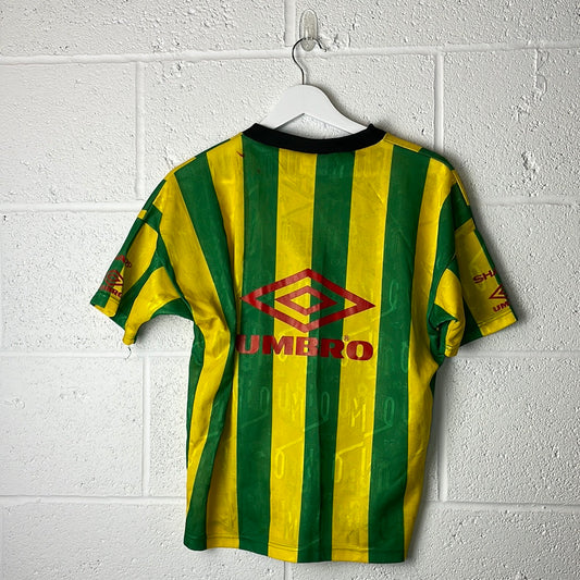 Manchester United 1992-1993 Green & Gold Training Shirt - LB/ Small Adult - Very Good Condition