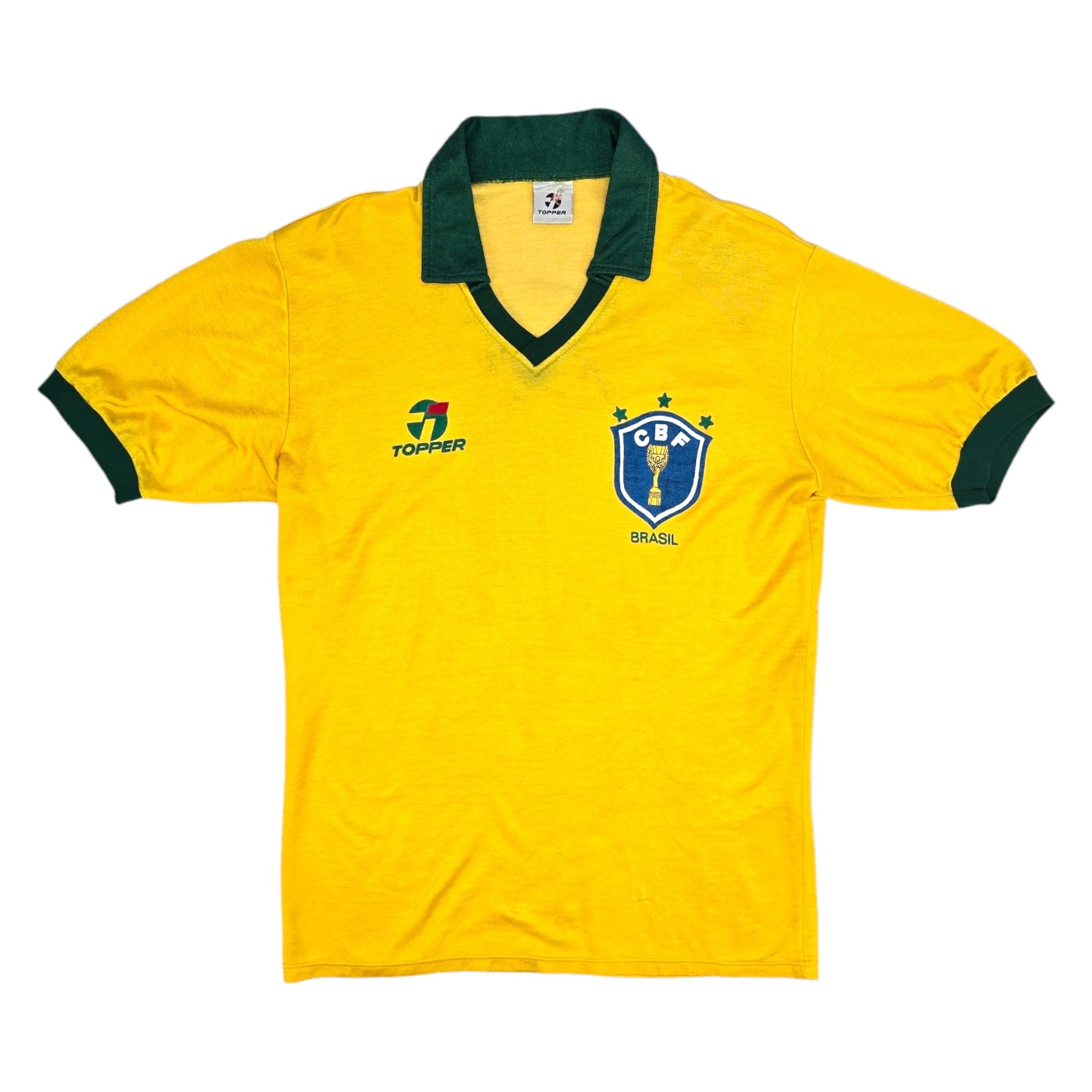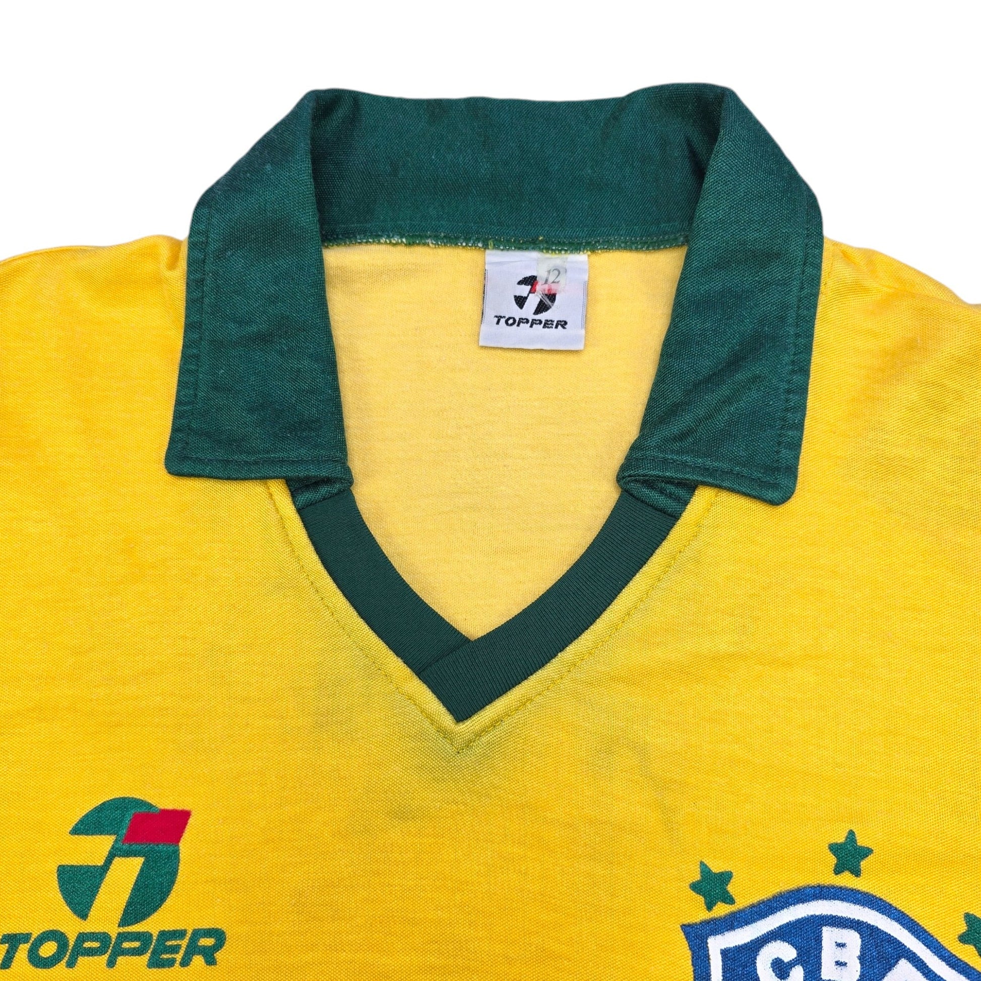 Information: Official Topper Brazil home football shirt from 1985/88, as worn by ‘Seleção’ at the 1986 FIFA World Cup in Mexico, where the side topped there group before going on to reach the quarter finals.  A fantastic vintage jersey, ideal for a collection of your own or the perfect gift for any football fan.