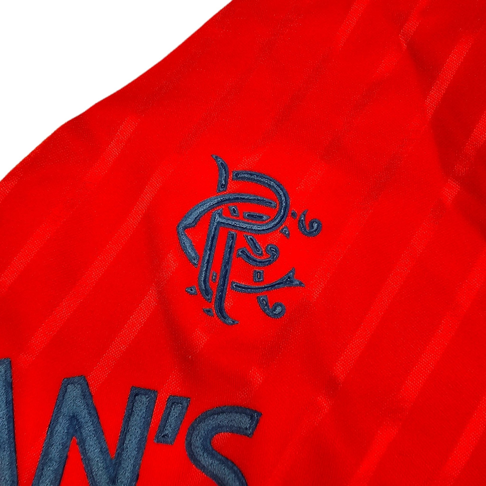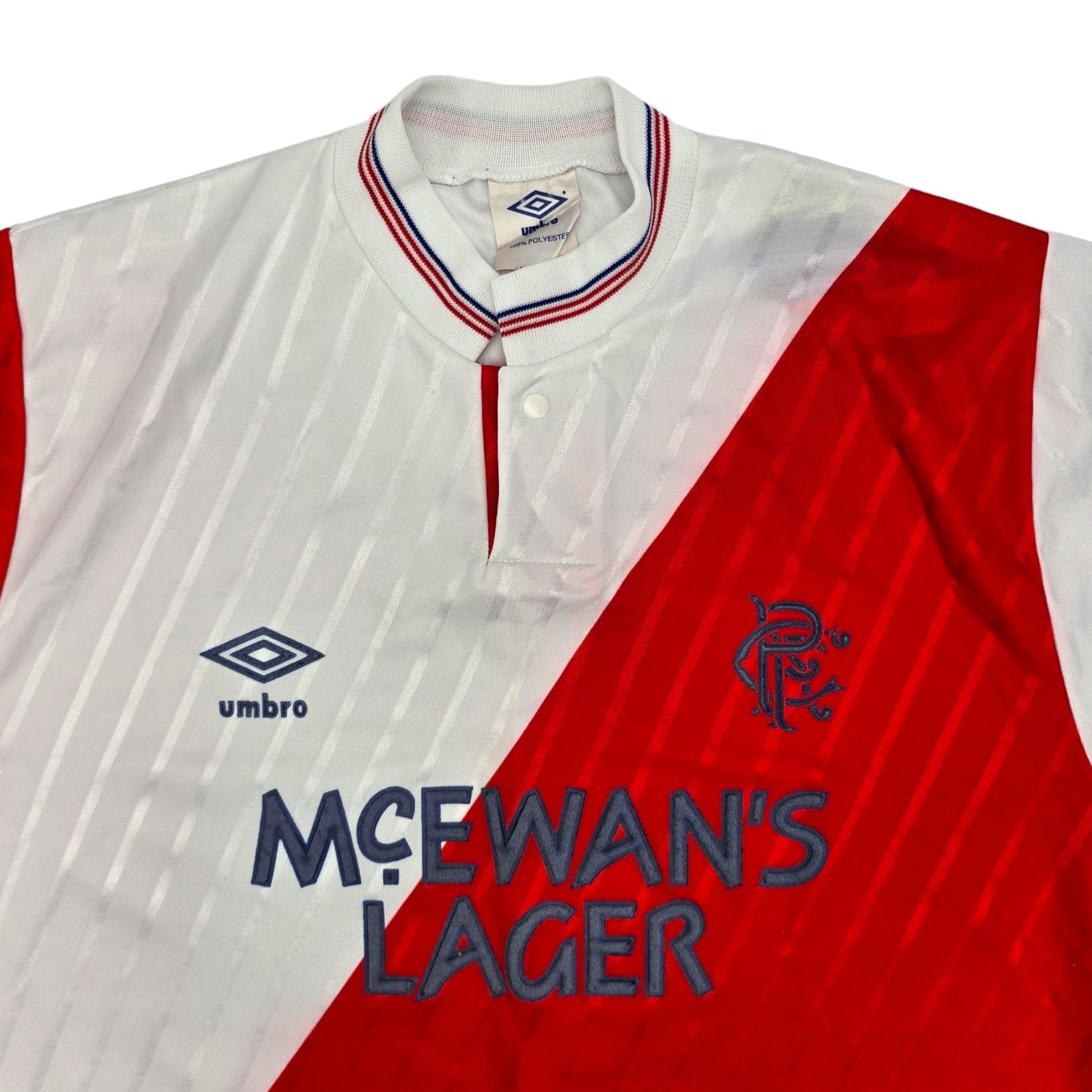 Information: Official Umbro Glasgow Rangers away football shirt from 1988/90, as worn by ‘The Gers’ when manager Graeme Souness led them to consecutive Scottish Premier Division titles, as well as the League Cup in 88/89. A fantastic vintage jersey, ideal for a collection of your own or the perfect gift for any football fan.