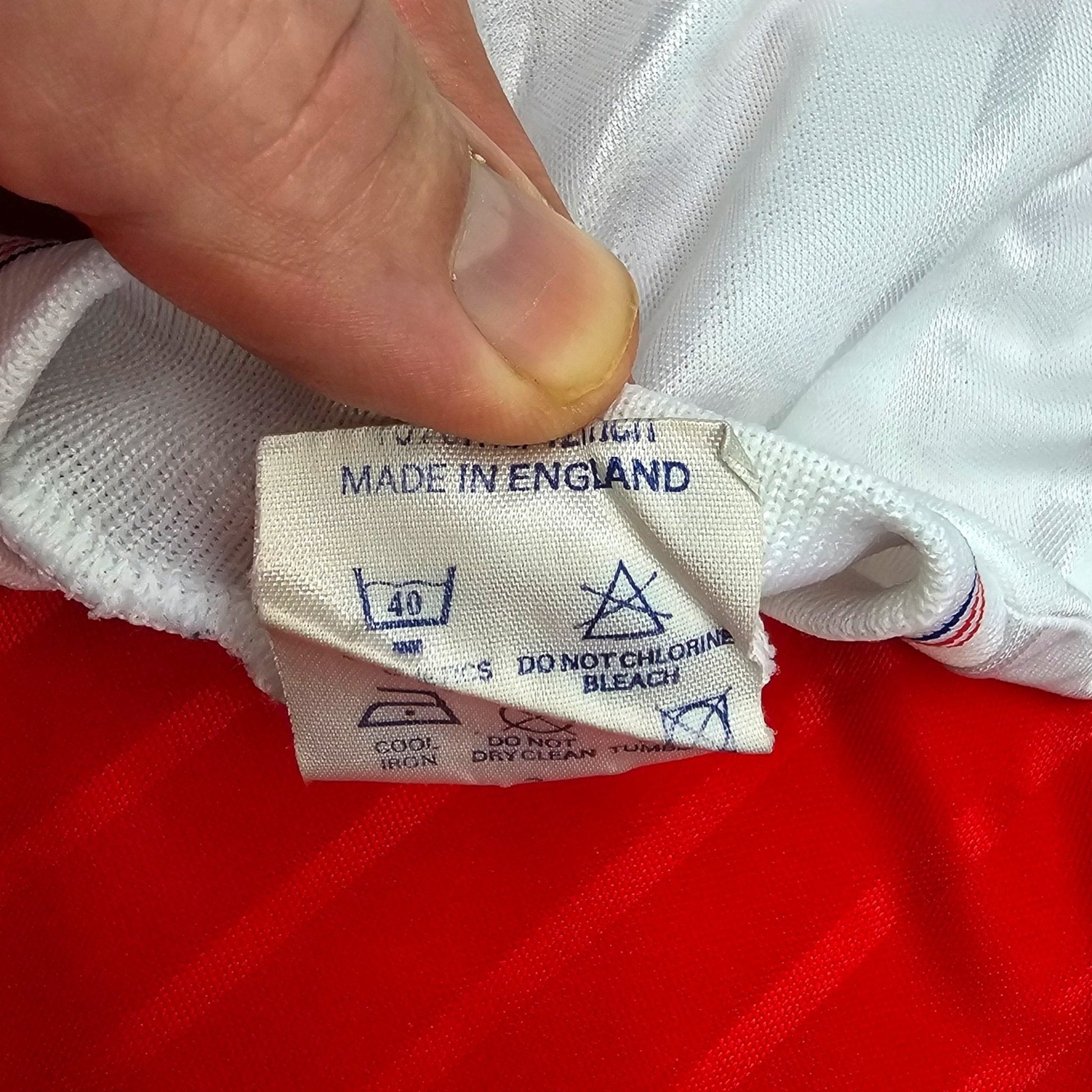 Condition: Excellent. Superb colours, material is smooth and silky with a a few bobbles and tiny pulls, no tears or holes. Flock manufacturer logo and club badge are excellent, as is the chest sponsor.  Collar, sleeves and hem are in fabulous condition.