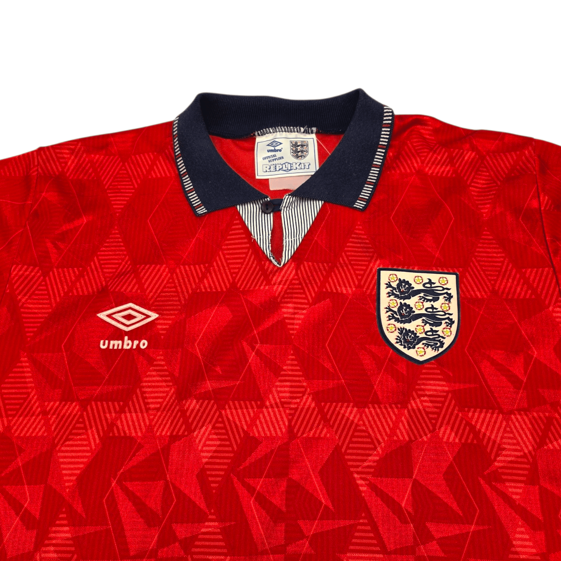 Information: Official Umbro England away football shirt, as worn by ‘The Three Lions’ during the 1990 to 1993 seasons. A fantastic vintage jersey, ideal for a collection of your own or the perfect gift for any football fan.