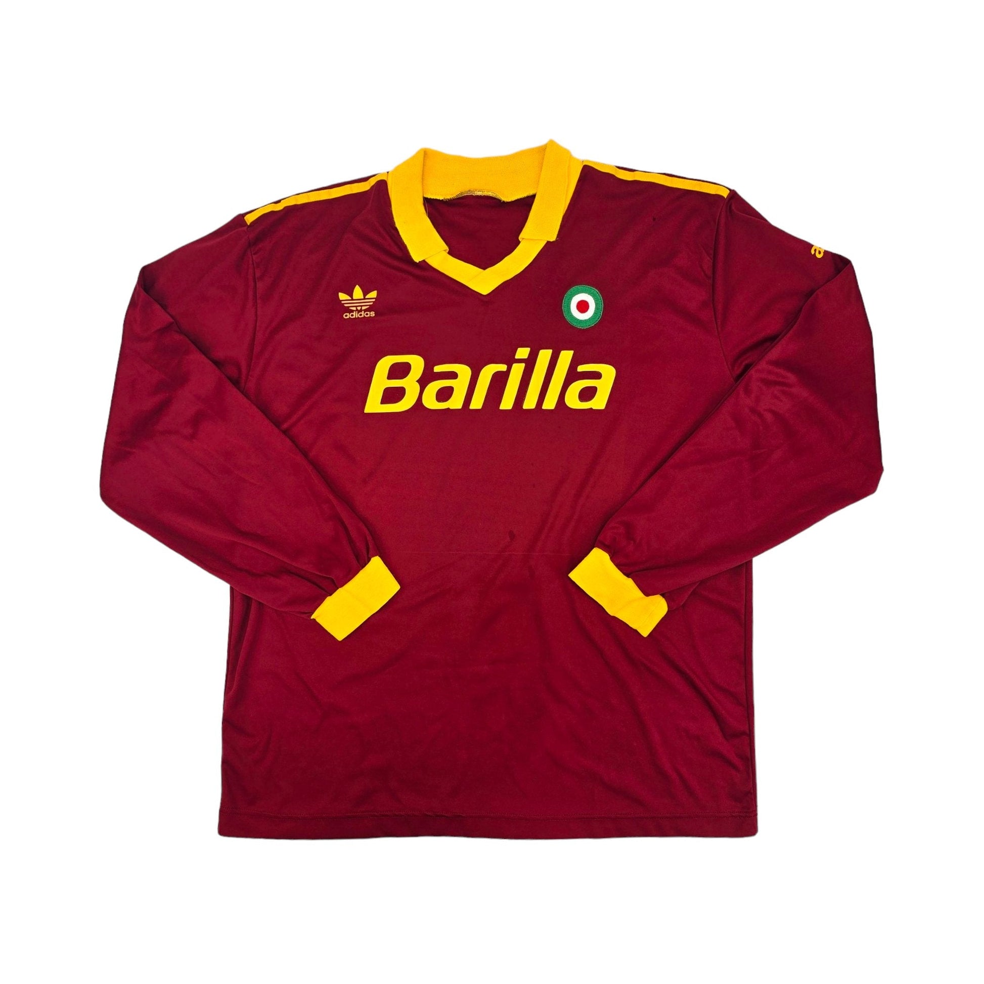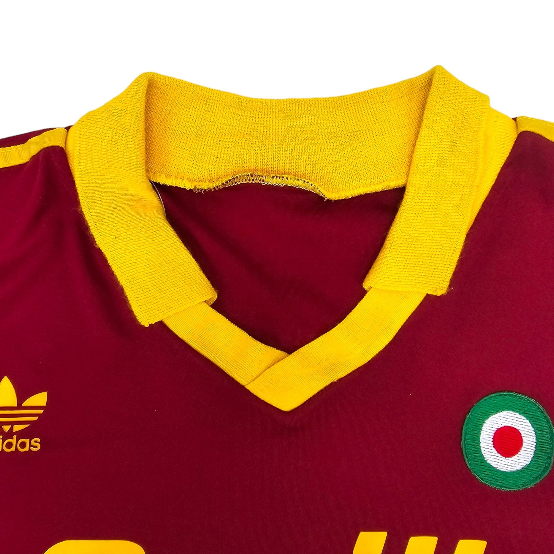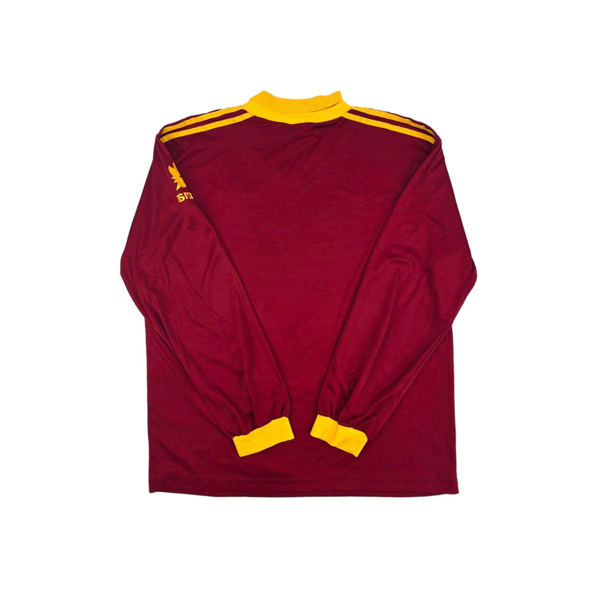 Information: Extremely rare and collectable official Adidas Roma long sleeve home football shirt from 1991/92, as worn by ‘I Giallorossi’ during manager Ottavio Bianchi's final season in charge, where the side reached the quarter finals of the UEFA Cup Winners Cup and finished runners-up in the Supercoppa Italia.  Extremely rare and sought iconic design.  A fantastic vintage jersey, ideal for a collection of your own or the perfect gift for any football fan.