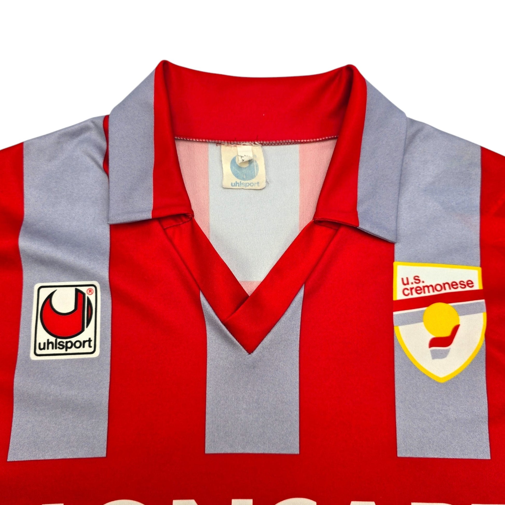 Information: Official Uhlsport Cremonese home football shirt from 1992/93, as worn by 'I Grigiorossi' when they were promoted to Serie A, after finishing 2nd in Serie B. This beautiful design was also worn when the club won the 1992/93 Anglo-Italian Cup, beating Derby County 3-1 in the final. A fantastic vintage jersey, ideal for a collection of your own or the perfect gift for any football fan.