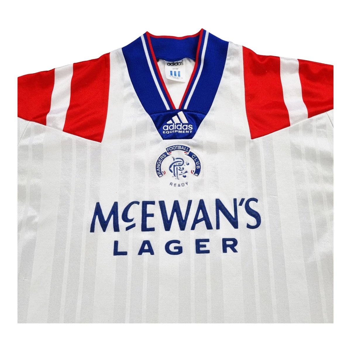 Information:  Official Adidas Glasgow Rangers away football shirt from 1992-94 as worn during Rangers treble season when the club won the Scottish League, Scottish League Cup, and Scottish Cup.
