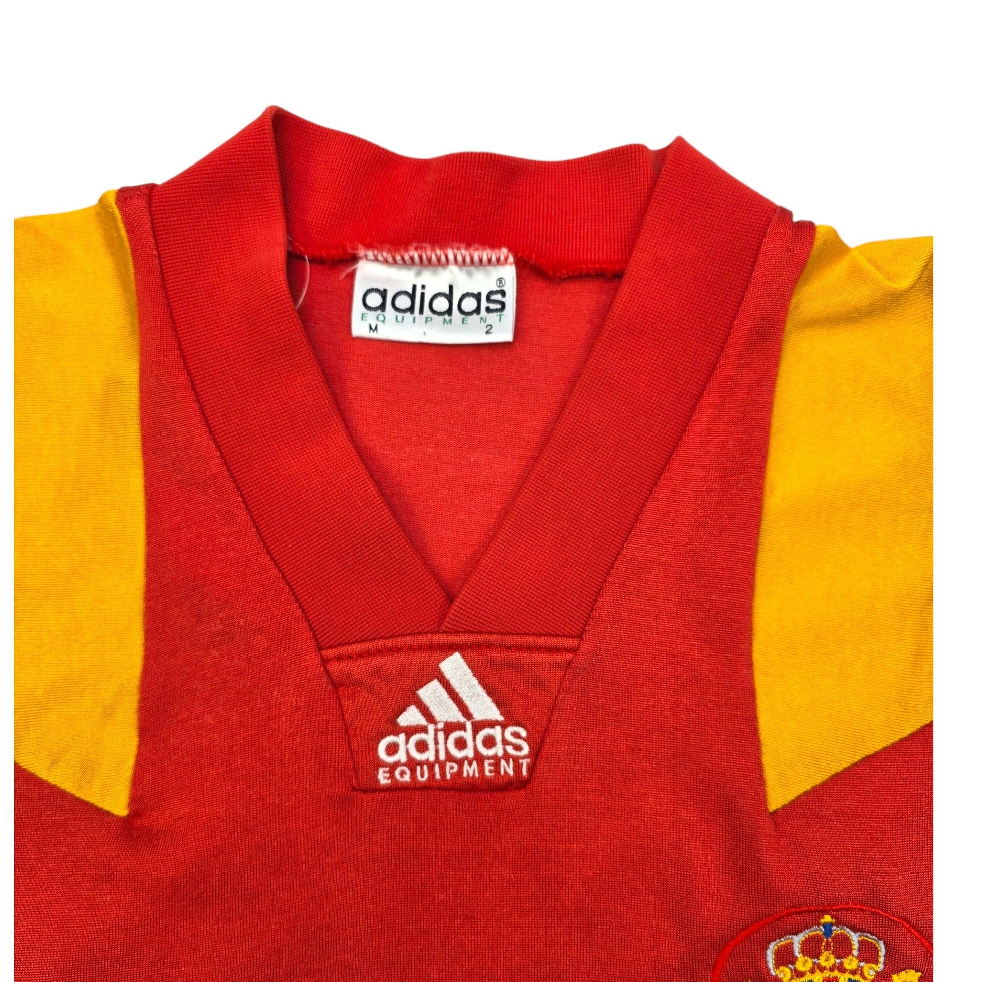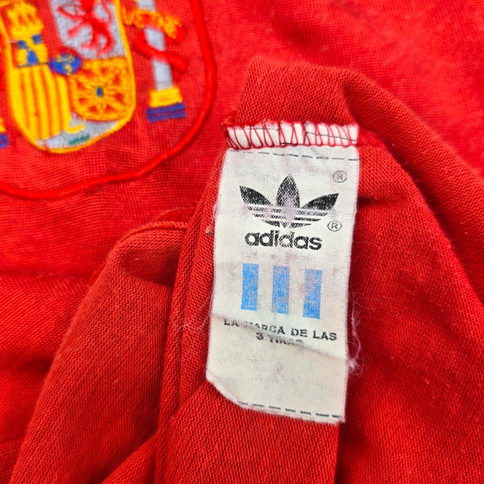 Information: Official Adidas Spain home football shirt from 1992/94, as worn by ‘La Roja’ during qualification for the 1994 FIFA World Cup.  This rare shirt was manufactured in Argentina by Adidas for the South American market. Iconic Spanish shirt design.  A Football Finery Favourite.  A fantastic vintage jersey, ideal for a collection of your own or the perfect gift for any football fan.