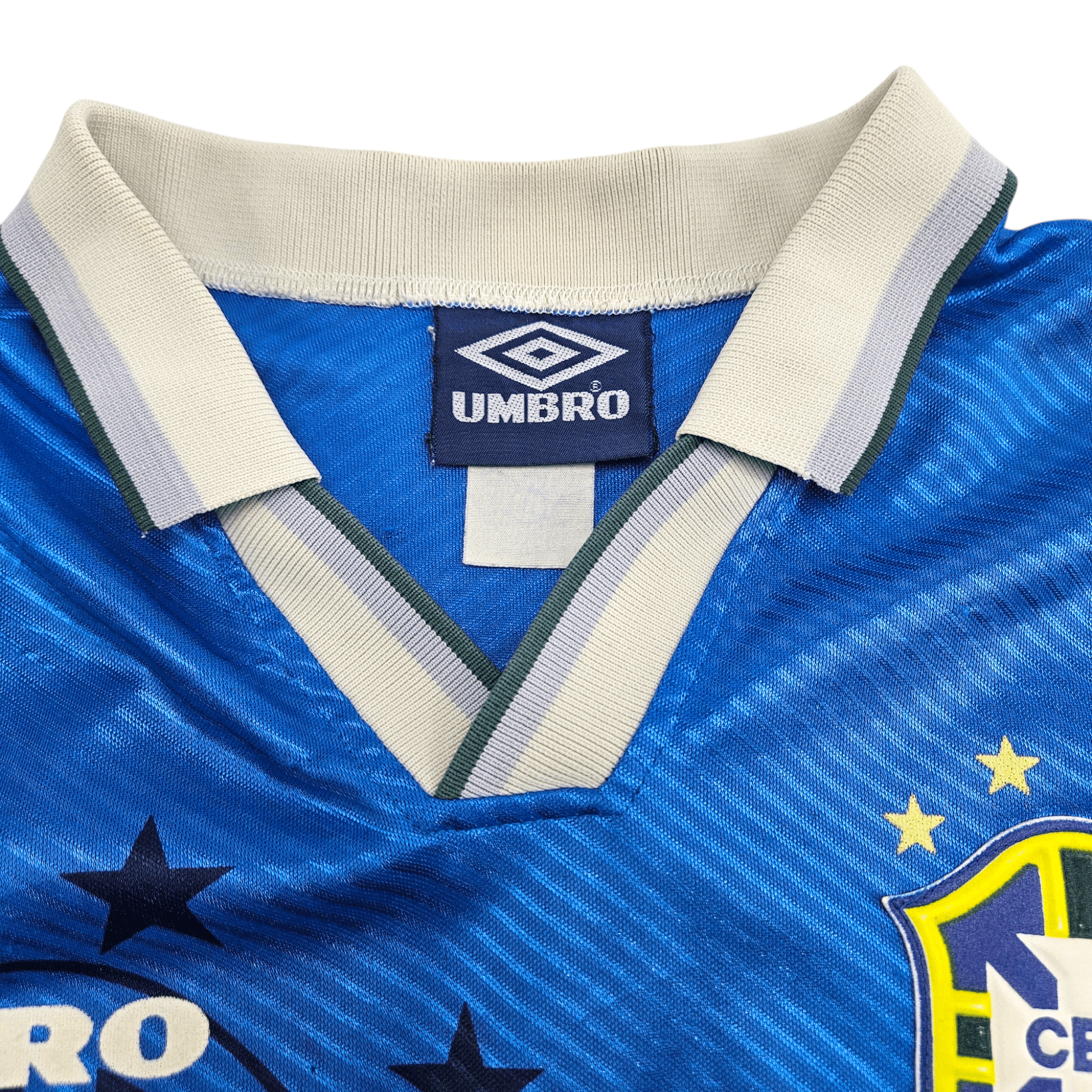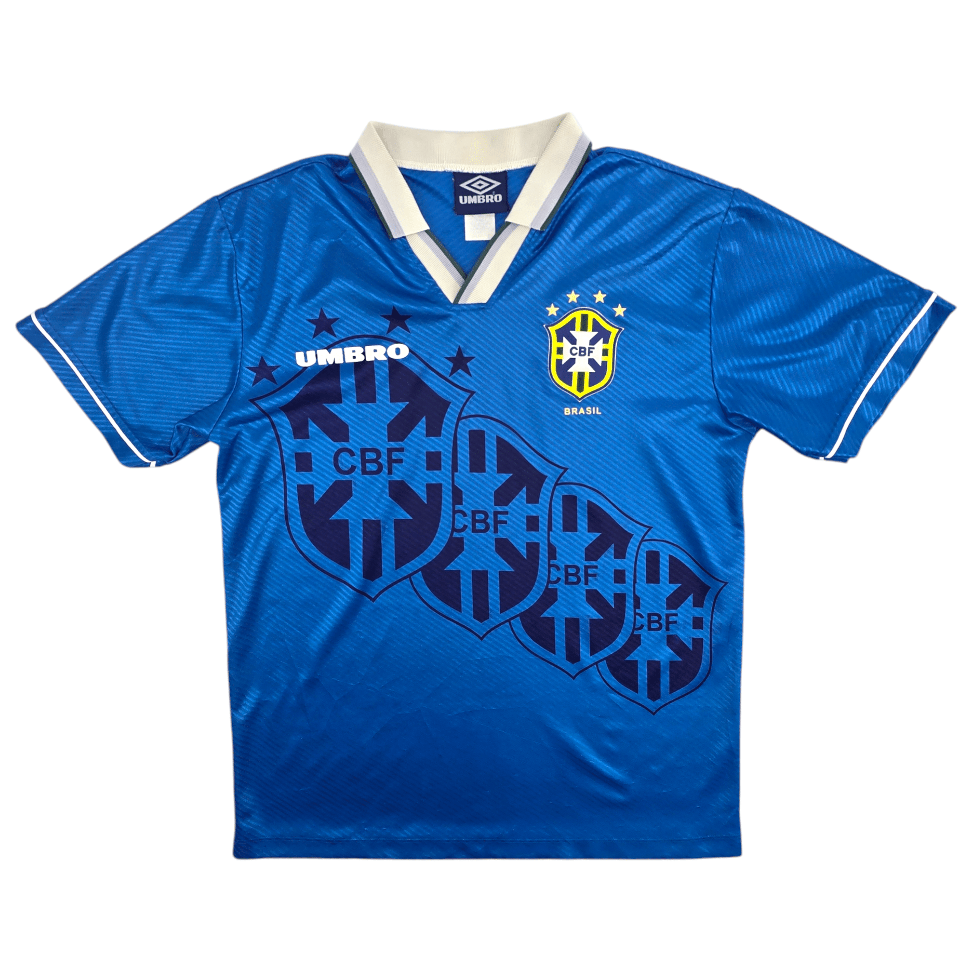 Information: Official Umbro Brazil away football shirt from 1993/94, as worn by ‘Seleção’ at the FIFA World Cup 1994 hosted by the USA where the Brazilians became world champions for a 4th time, beating Italy on penalties in the final. A fantastic vintage jersey, ideal for a collection of your own or the perfect gift for any football fan.