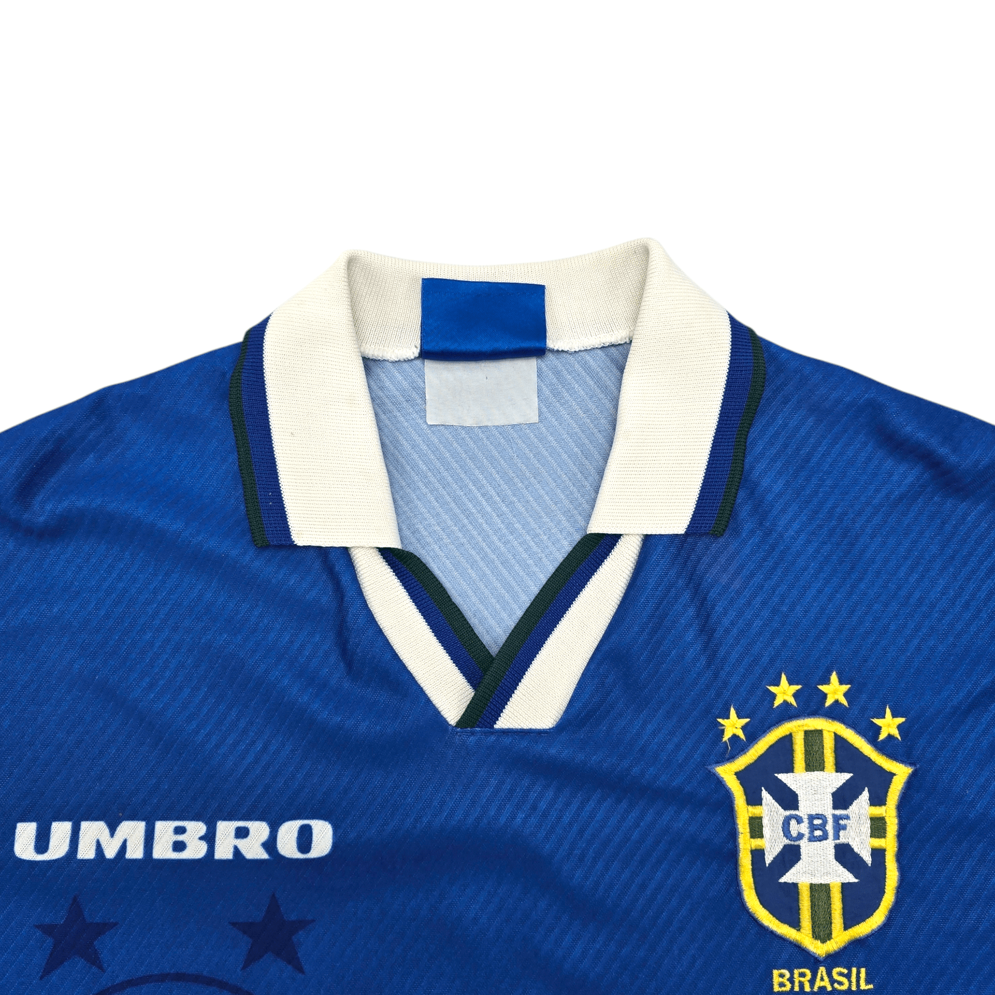 Information: Official Umbro Brazil away football shirt from 1993/94, as worn by ‘Seleção’ at the FIFA World Cup 94 hosted by the USA, where the star-studded side became world champions for a 4th time, beating Italy on penalties in the final. A fantastic vintage jersey, ideal for a collection of your own or the perfect gift for any football fan.