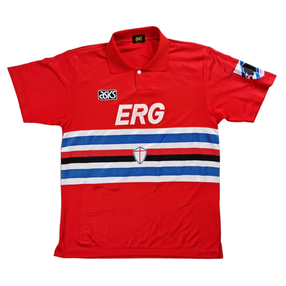 Information:  Official Asics Sampdoria third football shirt from the 1993/94 season as worn when Sven-Goran Eriksson managed the side to 3rd in Serie A, finishing 6 points behind champions AC Milan.  Sampdoria triumphed in the Coppa Italia beating Ancona 6-1 on aggregate in the final.  Upgraded with # 4 on reverse.