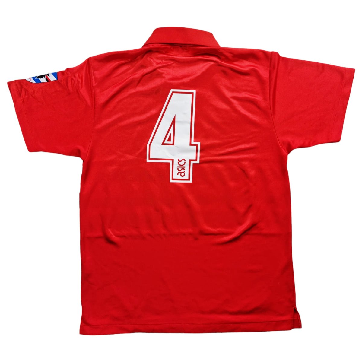 Condition:  V.Good.  Material in excellent condition given its age - no holes, tears or stains.  A few tiny bobbles, no snags or pulls.  Mild fade to some of the shirt colours.  Club sleeve badge and #4 on reverse are mint, likely applied retrospectively.  Some deterioration to ERG chest sponsor.  Superb stitched manufacturer logo.  Fabulous Asian market shirt, 100% genuine Asics product.