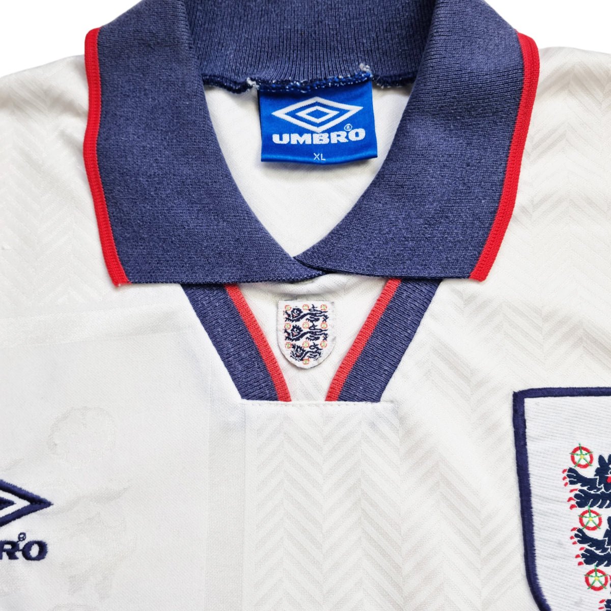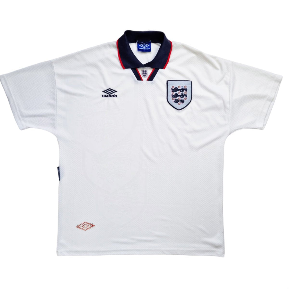 Information:  Official Umbro England home football shirt from 1993-95.  Collectable jersey, as worn during Graham Taylor's reign as manager when the Three Lions missed out on qualification for the 1994 World Cup.