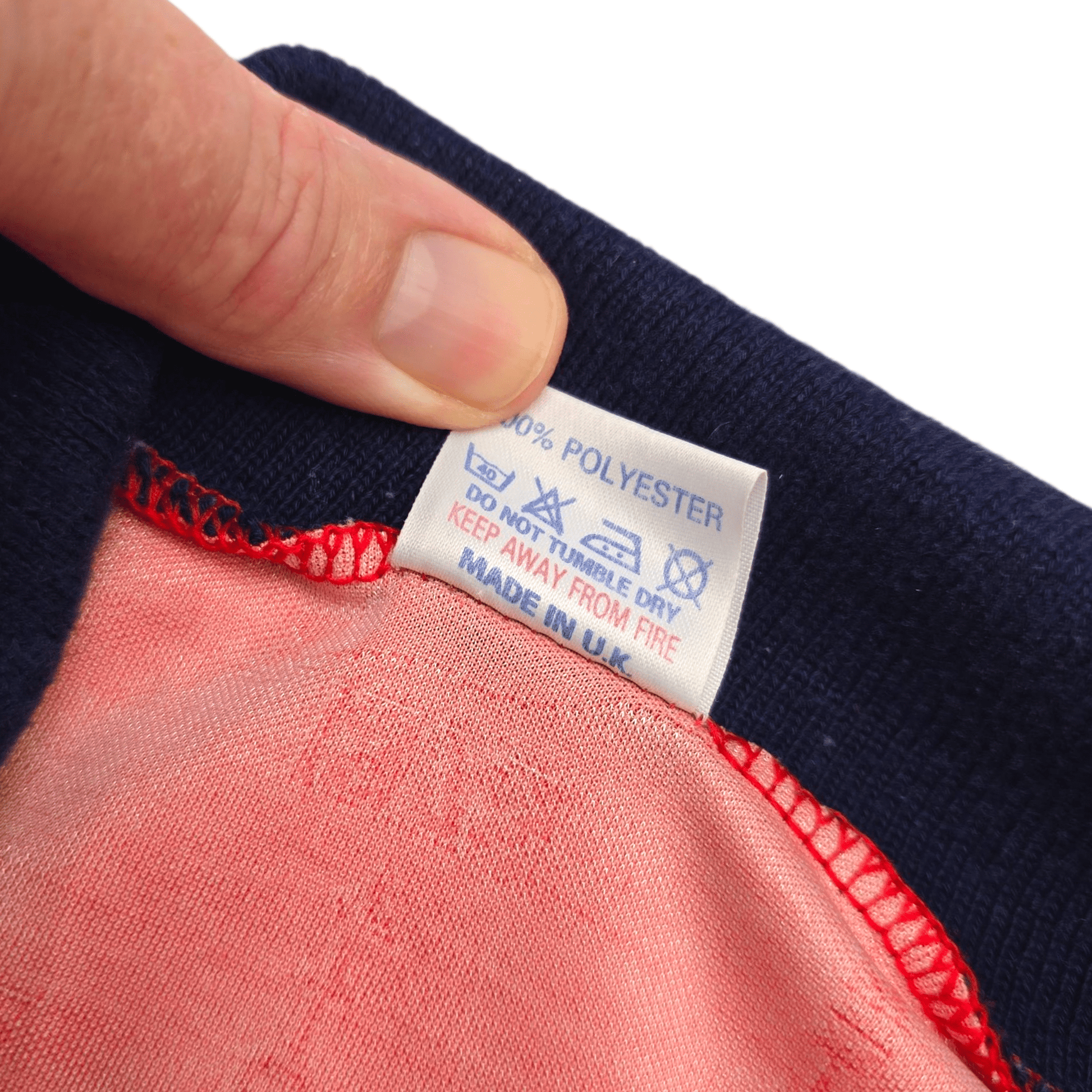 Condition: Excellent. Superb colours, material is smooth with a few bobbles, no pulls, tears or holes. Sublimated manufacturer logo, club badge & chest sponsor are all excellent, as is small stitched shield to neck. Collar, sleeves and hem are in fabulous condition.