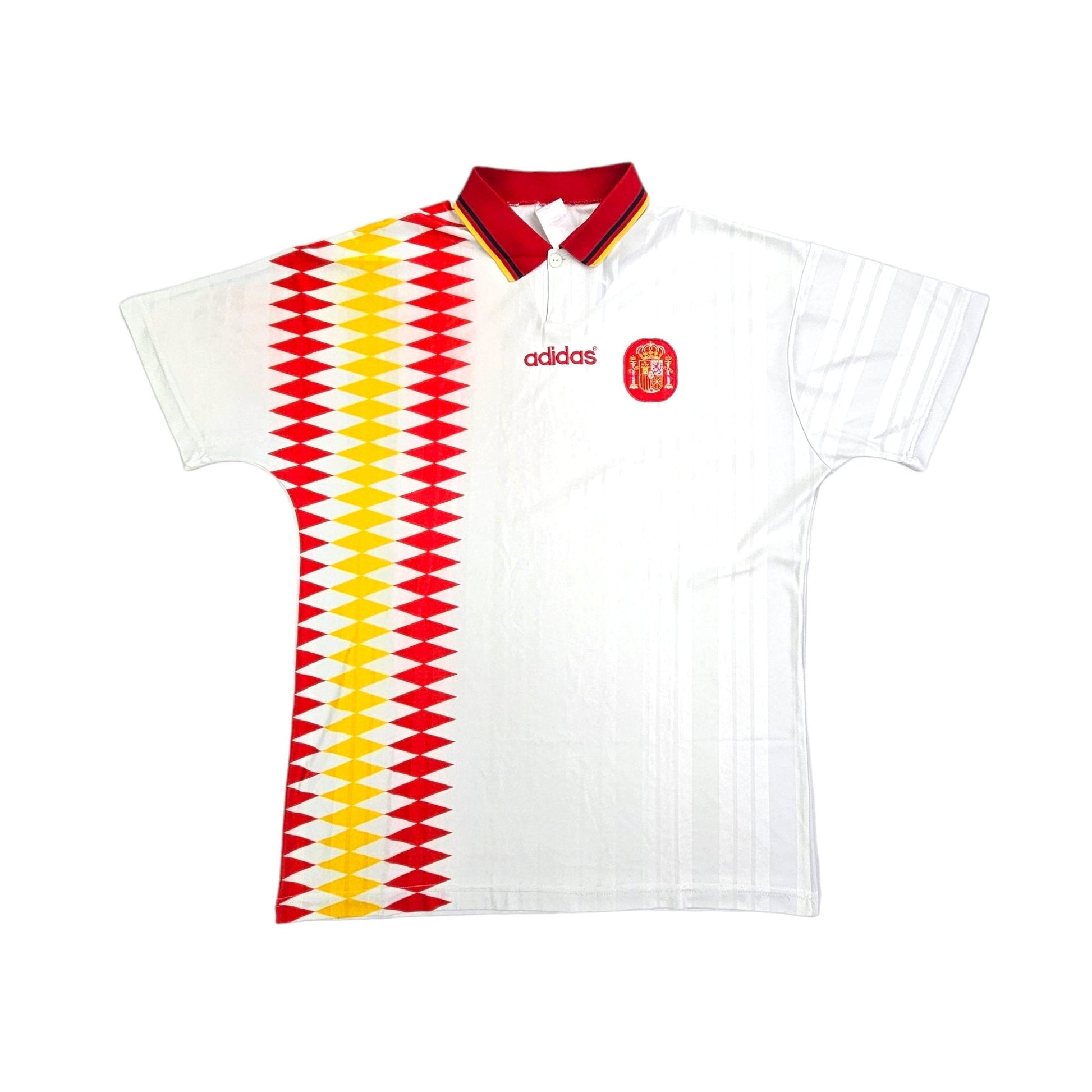 Information: Official Adidas Spain Away Football Shirt from 1994/96, as worn by 'La Furia Roja' at the 94 World Cup where the side reached the quarter-finals, and again in qualification for Euro 96. A rare & collectable classic Adidas shirt, with a bold striking design. A fantastic vintage jersey, ideal for a collection of your own or the perfect gift for any football fan.