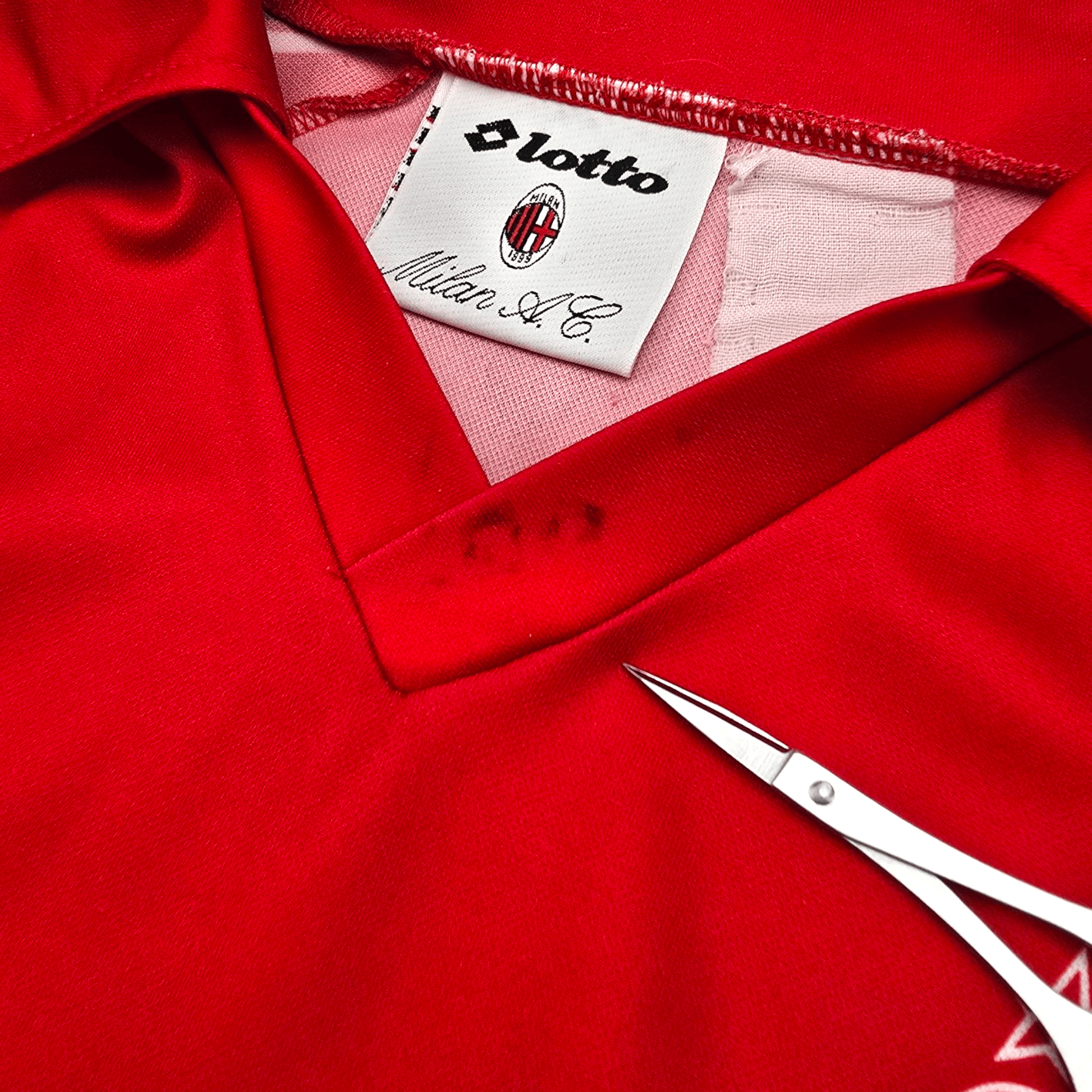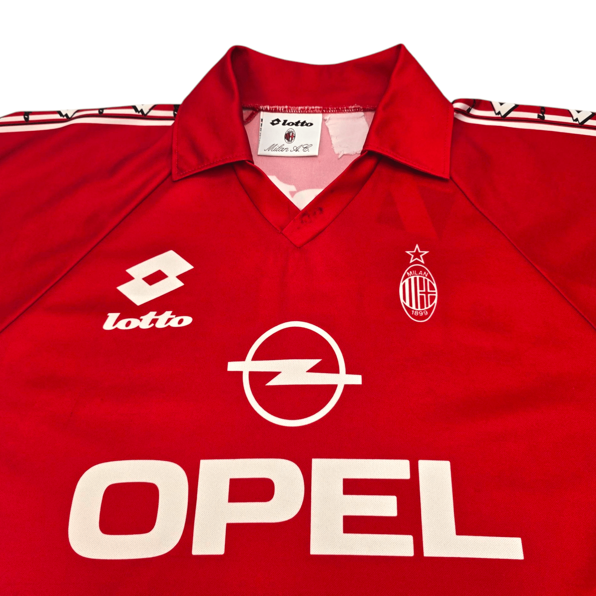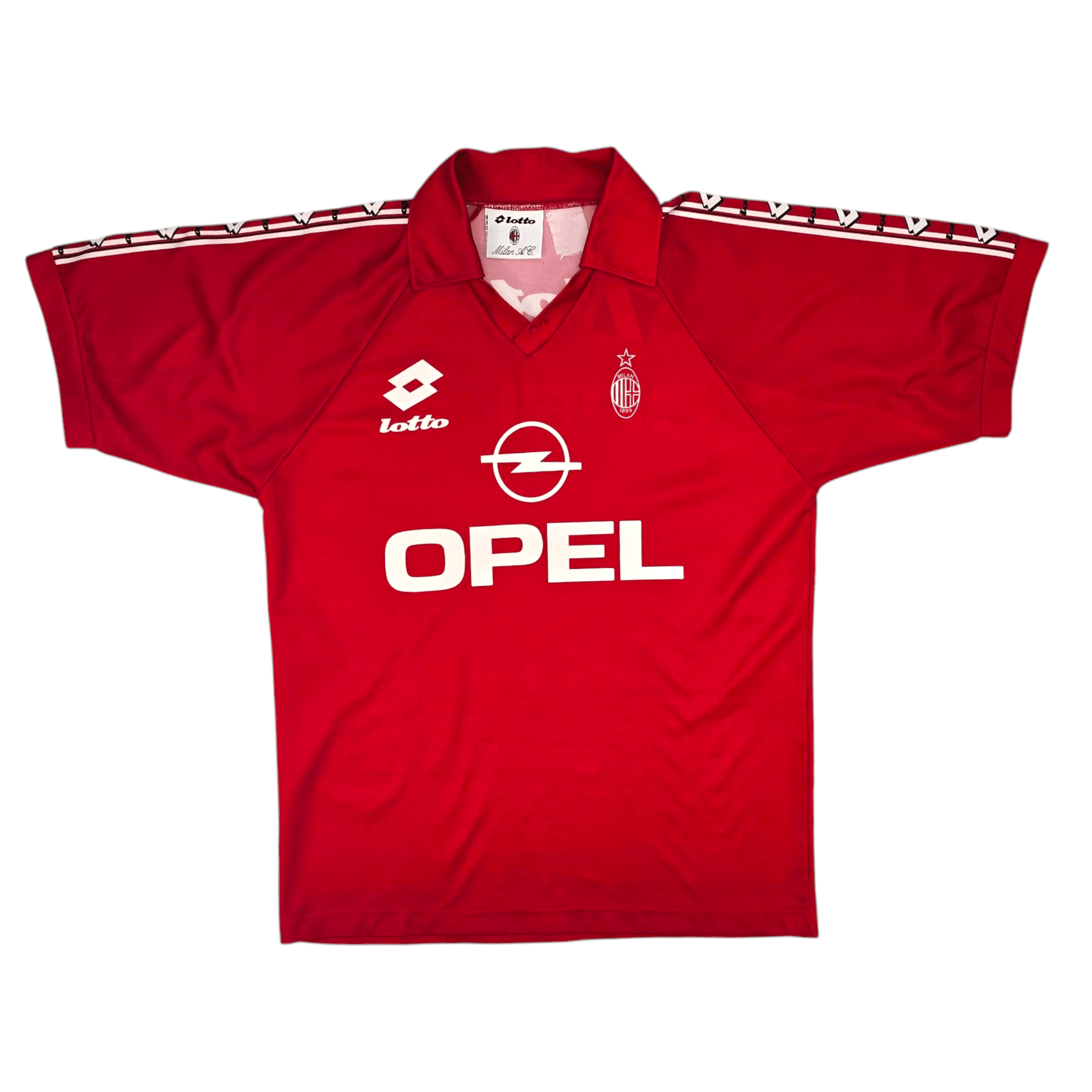 Information: Official Lotto AC Milan training shirt from 1995/96, as worn by ‘I Rossoneri’ when Fabio Capello's side enjoyed a successful Serie-A campaign, finishing the season as champions. A fantastic vintage jersey, ideal for a collection of your own or the perfect gift for any football fan.