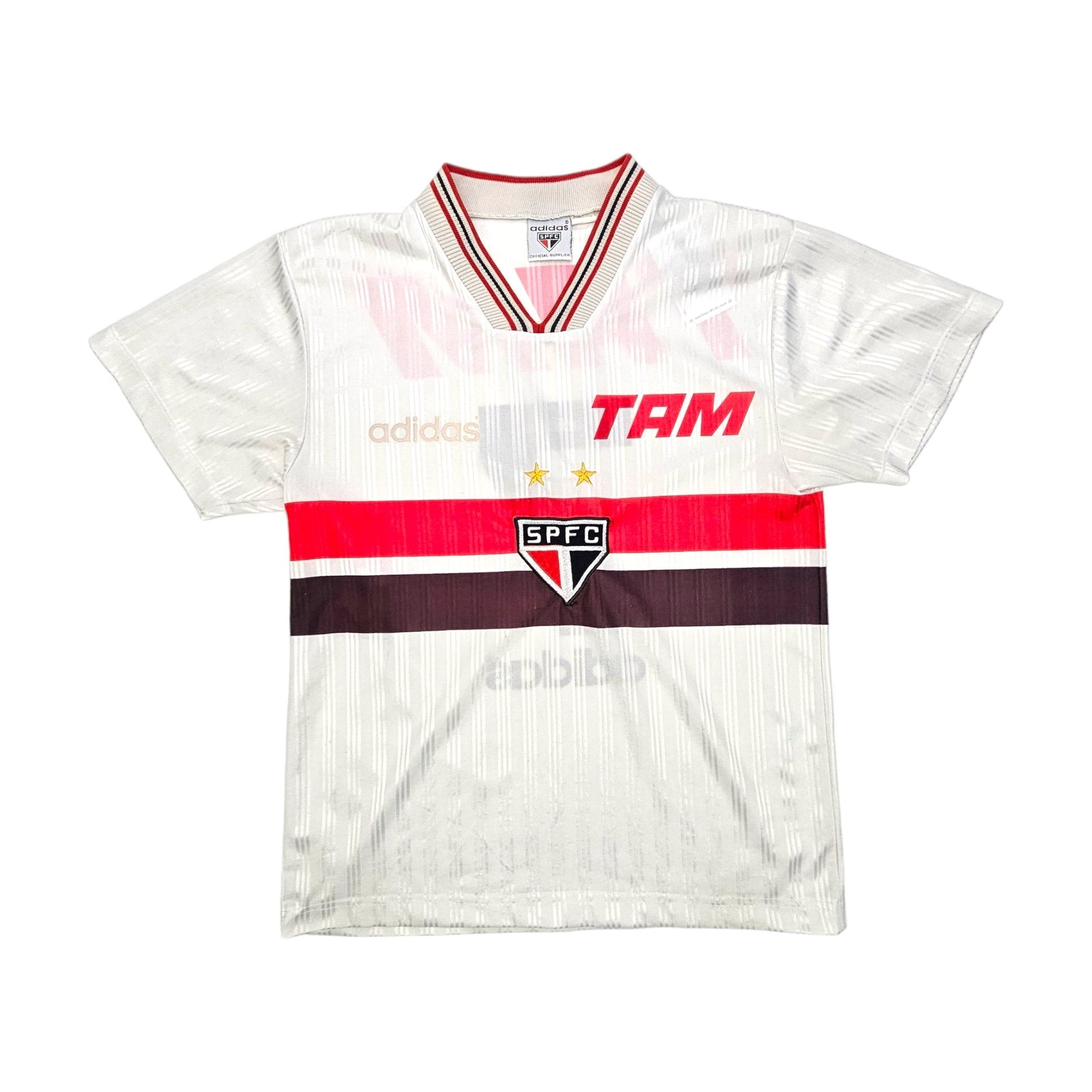 Information: Official Adidas Sao Paulo Home football shirt from 1996, as worn by ‘Tricolor Paulista’ when they finished 11th in the Campeonato Brasileiro Serie A and were knocked out in the second round of the Copa do Brasil after fielding an ineligible player. The reverse of the shirt boasts the number 7 as worn by Adriano Gerlin, a journeyman striker who represented an astonishing 19 sides during his 20 year career. A fantastic vintage jersey, ideal for a collection of your own or the perfect gift for any football fan.
