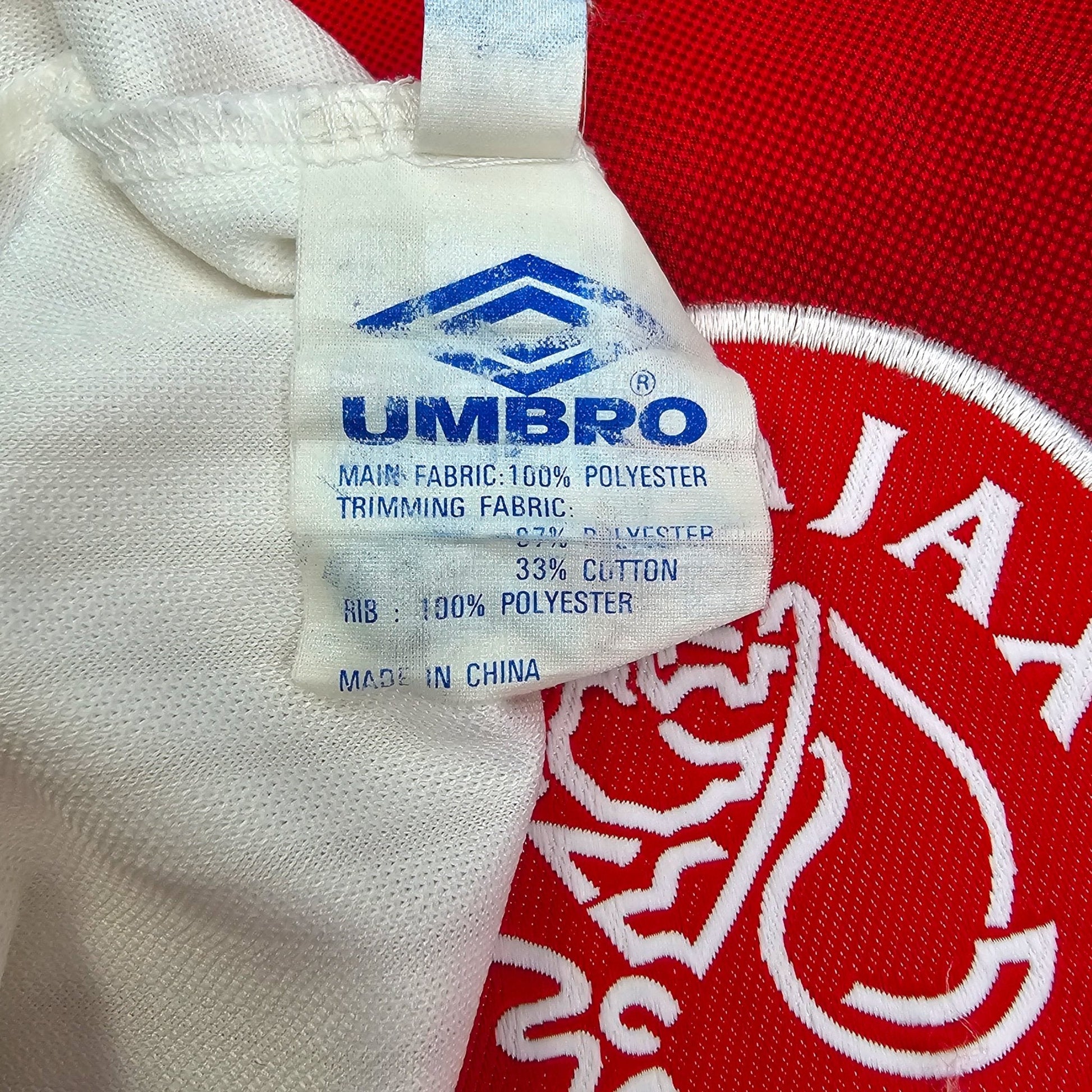 Information: Official Umbro Ajax home football shirt from 1997/98, as worn by ‘De Godenzonen’ during Morten Olsen's first season as Head Coach, when the Dutch giants won an Eredivisie & KNVB Cup double. Classic Ajax design.  A fantastic vintage jersey, ideal for a collection of your own or the perfect gift for any football fan.