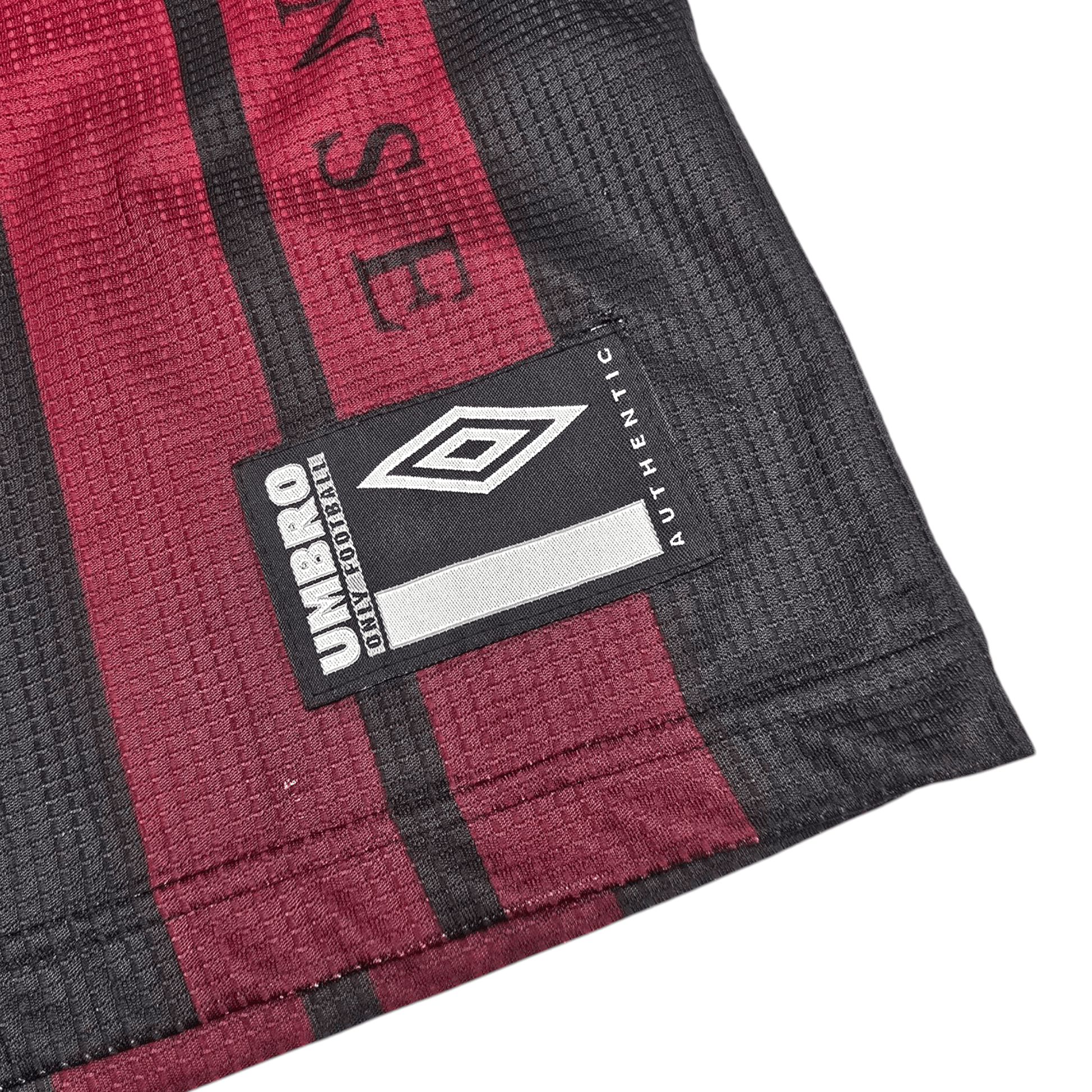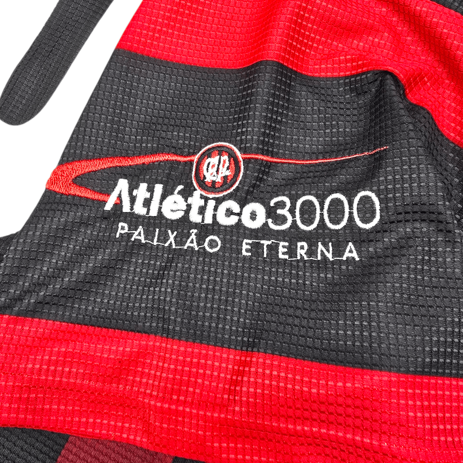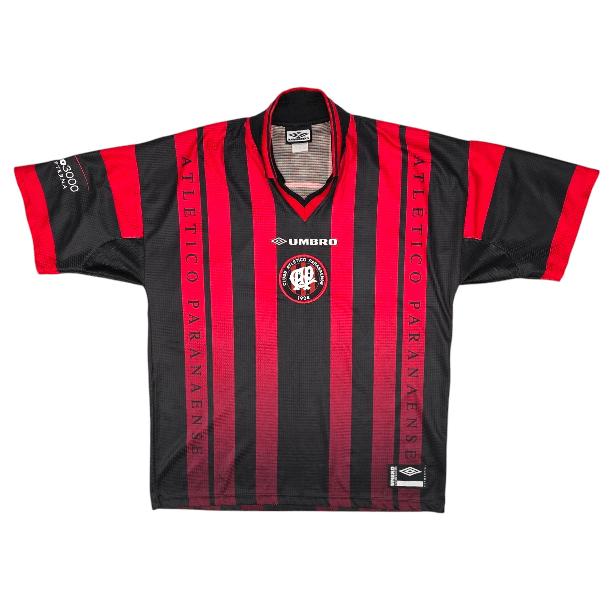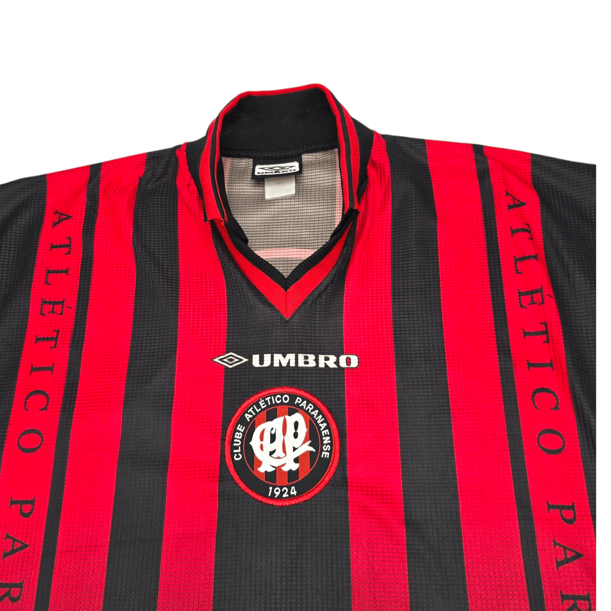 Information: Official Umbro Atletico Paranaense home football shirt from 1998/00, as worn by ‘Furacão’ when they finished 16th in the Campeonato Brasileiro Serie A, finishing 4 points clear of the relegation zone. The following season they won a Pre-Libertadores tournament, which gained them promotion to the Libertadores for the first time in their history. The reverse of the shirt boasts the number 10. A fantastic vintage jersey, ideal for a collection of your own or the perfect gift for any football fan.