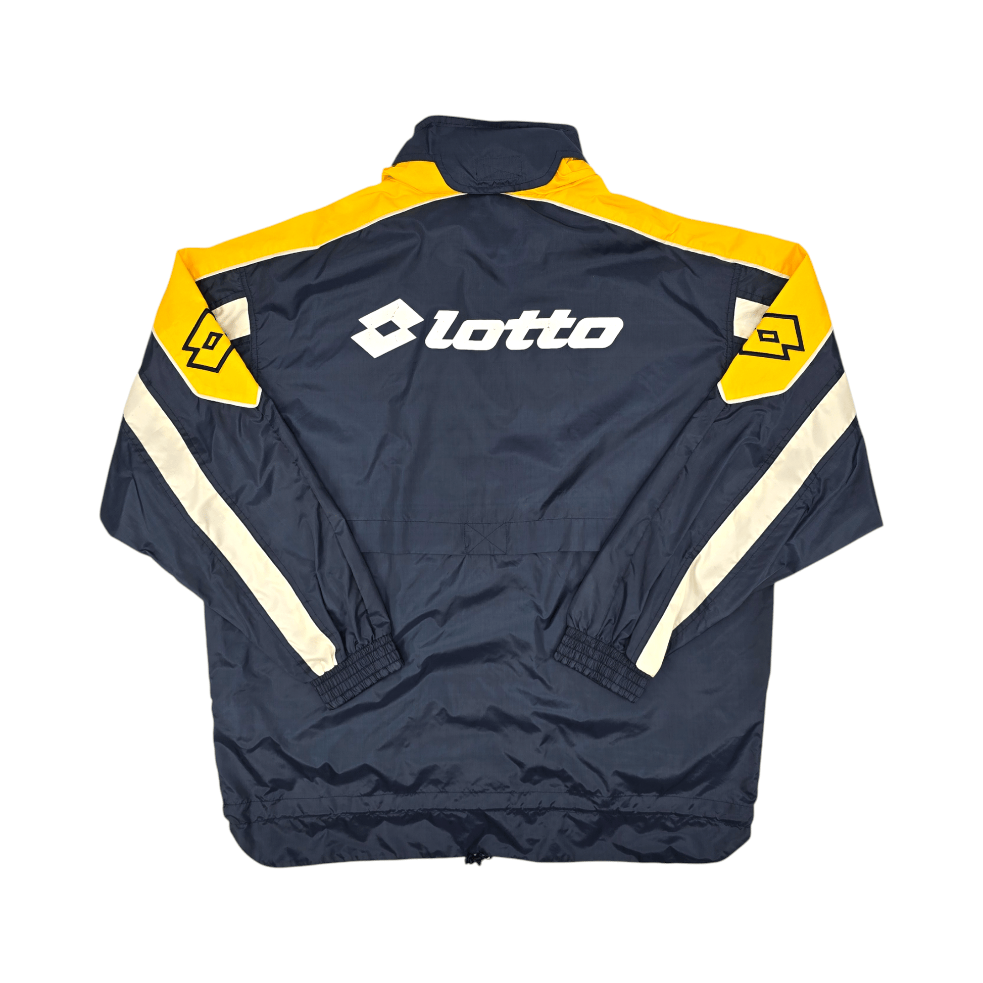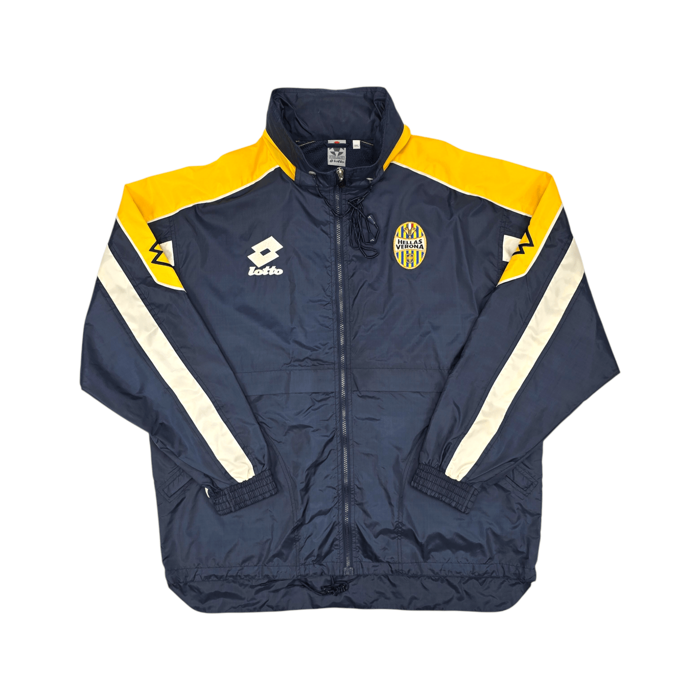 Information: Official Lotto Hellas Verona jacket from 1999/00, as worn by 'Gialloblu' during a competitive season where the side achieved a 9th place finish in Serie A. Features a concealed hood in the collar. A fantastic vintage piece, ideal for a collection of your own or the perfect gift for any football fan.