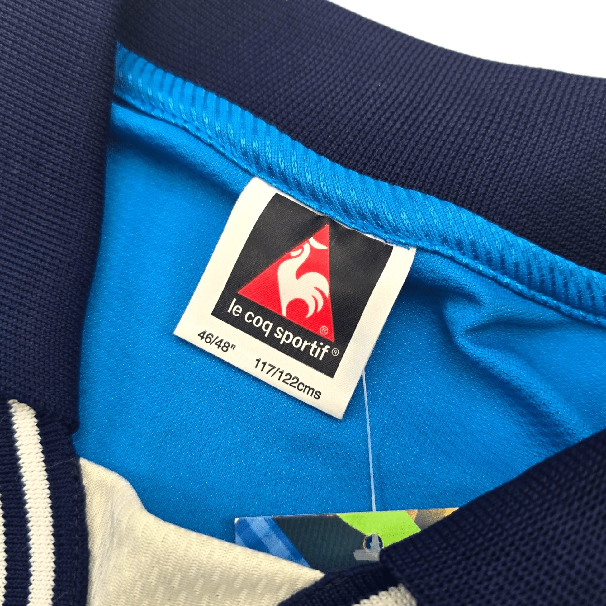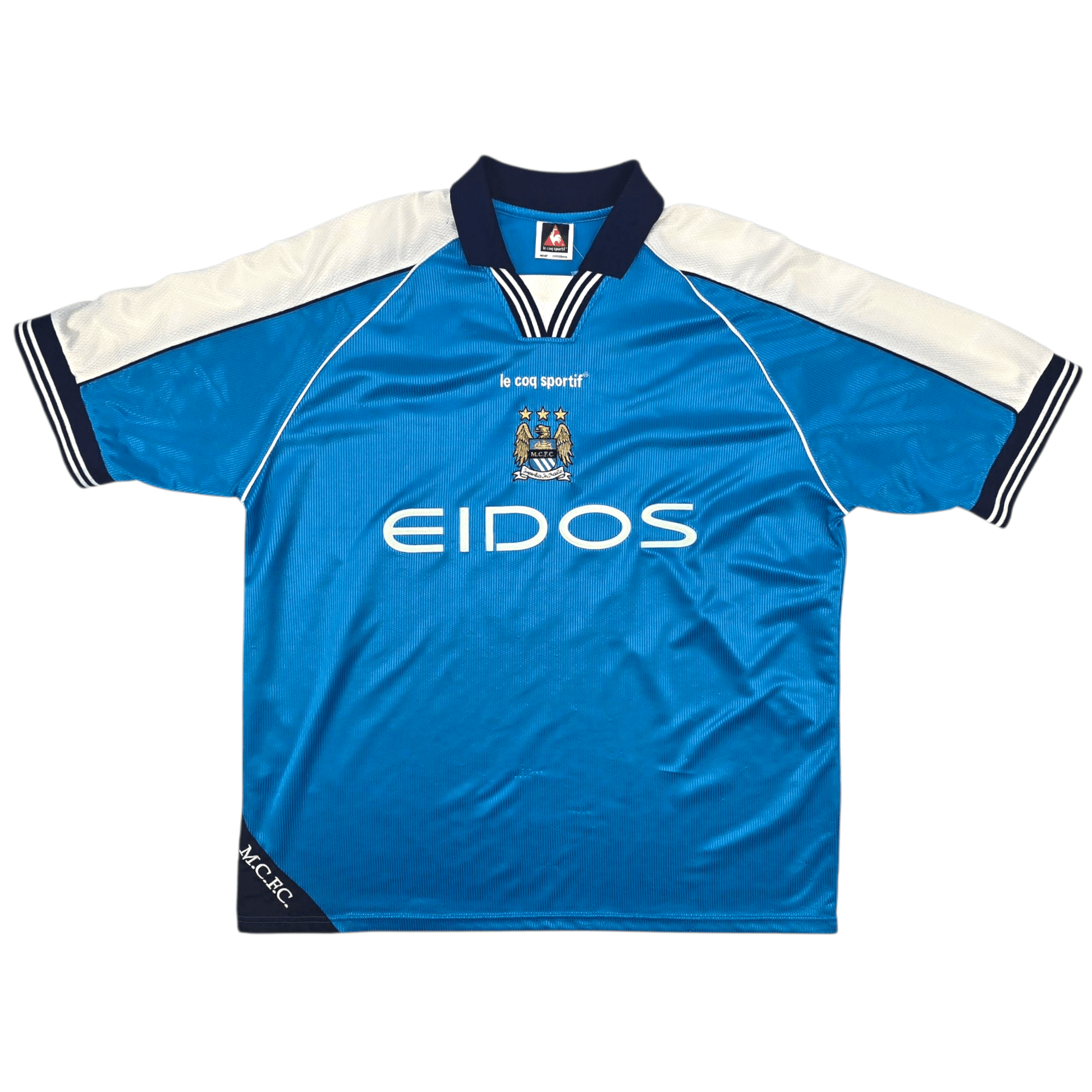 Information: Official Le Coq Sportif Manchester City home football shirt, as worn by ‘The Citizens’ during the 1999 to 2001 seasons. The reverse of the shirt boasts the nameset of club legend, Shaun Goater. A fantastic vintage jersey, ideal for a collection of your own or the perfect gift for any football fan.