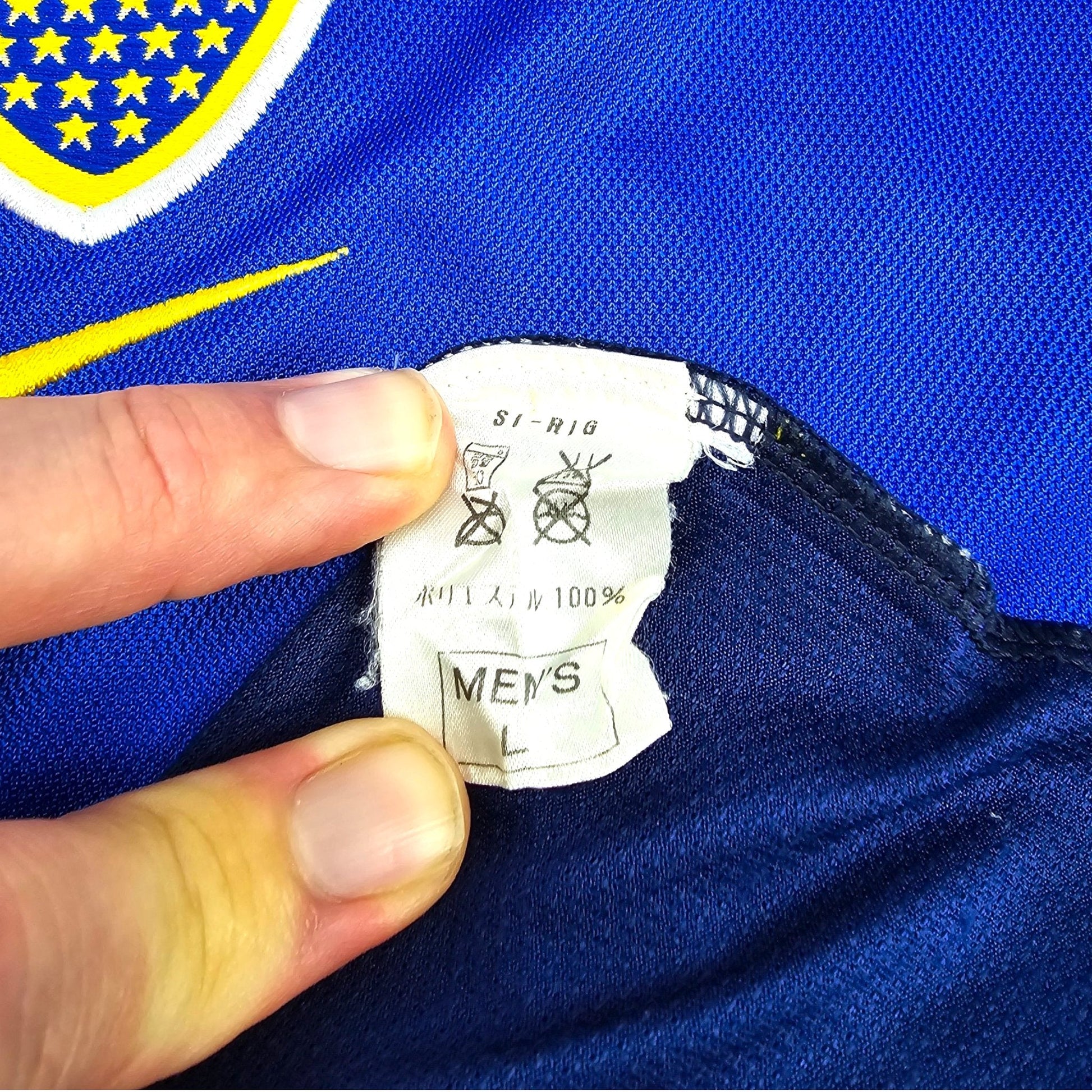 Information: Official Nike Boca Juniors home football shirt from 2001/02, as worn by ‘Xeneizes’ when the side retained the Copa Libertadores title, beating Cruz Azul in a penalty shoot-out. The same year they also took Bayern Munich to extra-time in the Intercontinental Cup held in Tokyo, Japan. Asian market issue, so has internal wash labels for the region. A fantastic vintage jersey, ideal for a collection of your own or the perfect gift for any football fan.