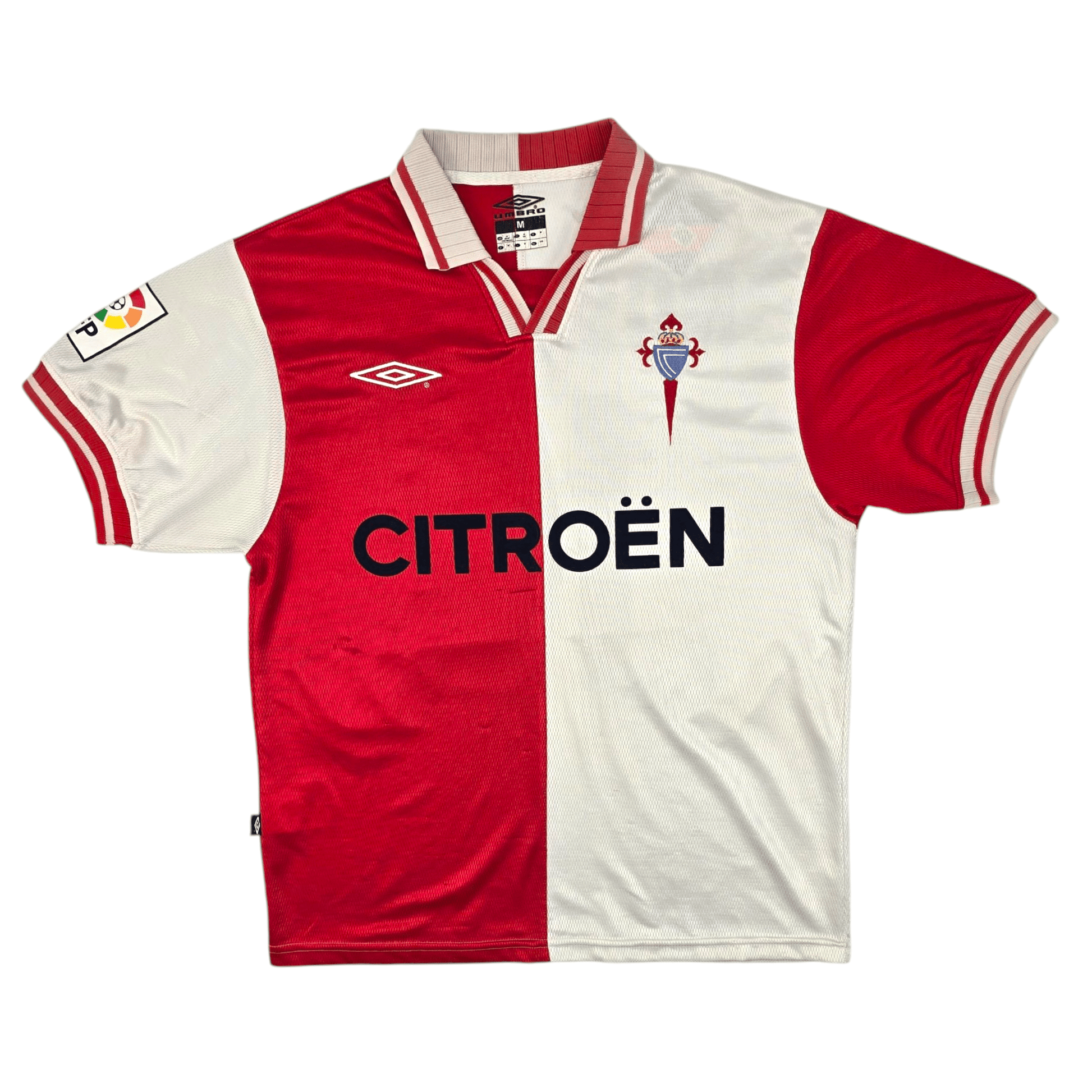 Information: Official Umbro Celta Vigo away football shirt from 2001/02, as worn by ‘Os Celestes’ when they finished 5th in La Liga. The reverse of the shirt boasts the nameset of Russian attacking midfielder, Aleksandr Mostovoi, who spent 8 years at the club, scoring 56 goals in his 235 appearances. A fantastic vintage jersey, ideal for a collection of your own or the perfect gift for any football fan.