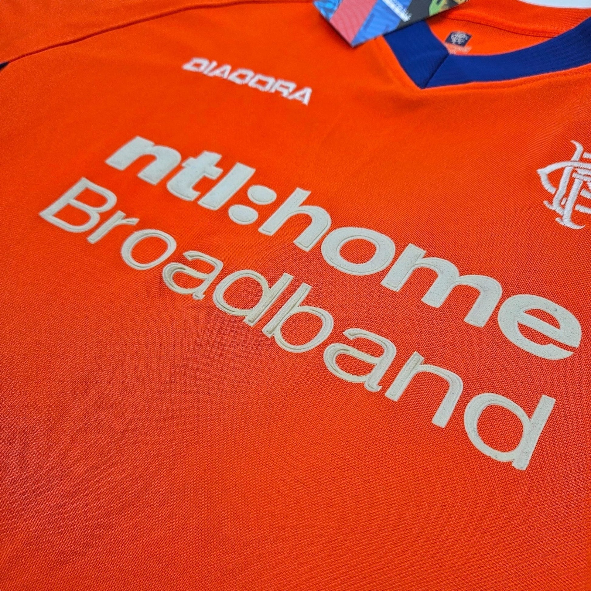 Information:  Official Diadoara Glasgow Rangers Away Football Shirt from the 2002/03 season, when the Scottish giants won a domestic treble in Alex McLeish first full season in charge.   A fantastic vintage jersey, ideal for a collection of your own or the perfect gift for any football fan.