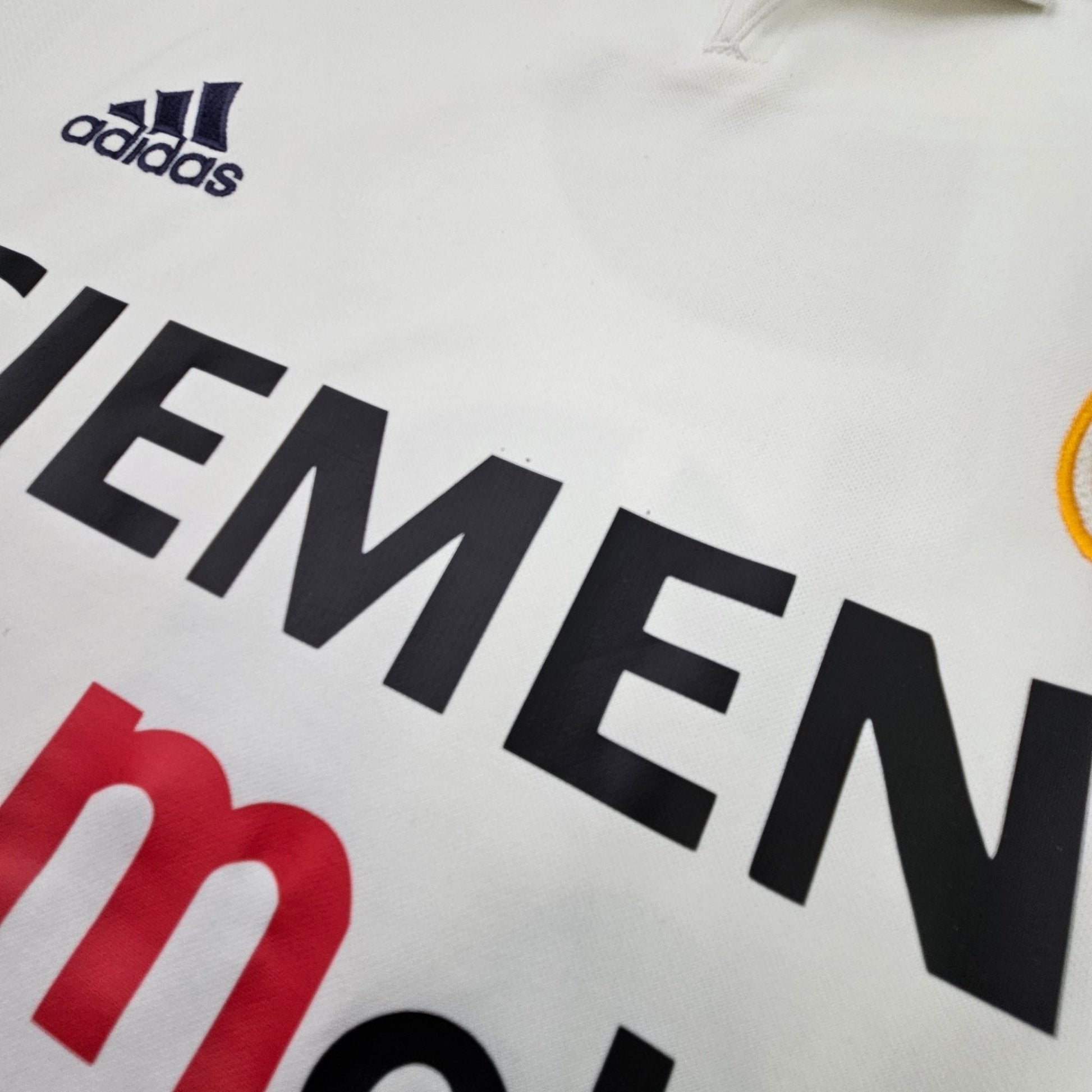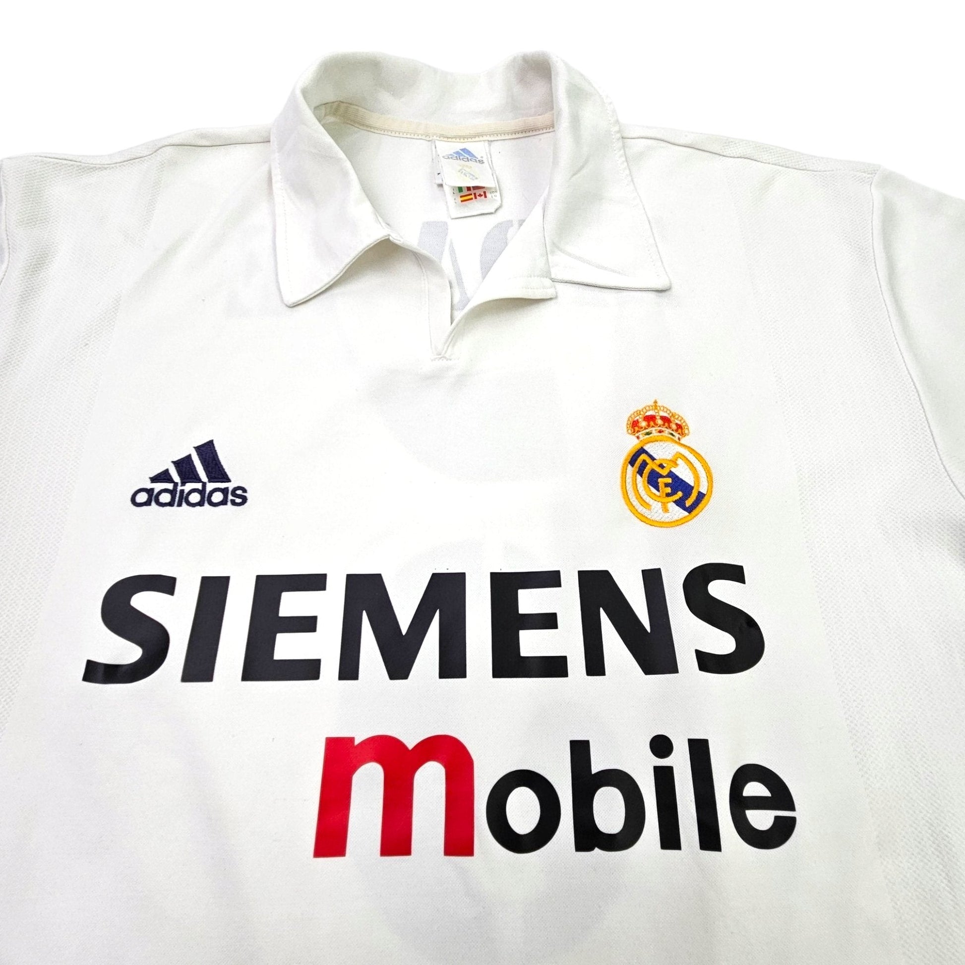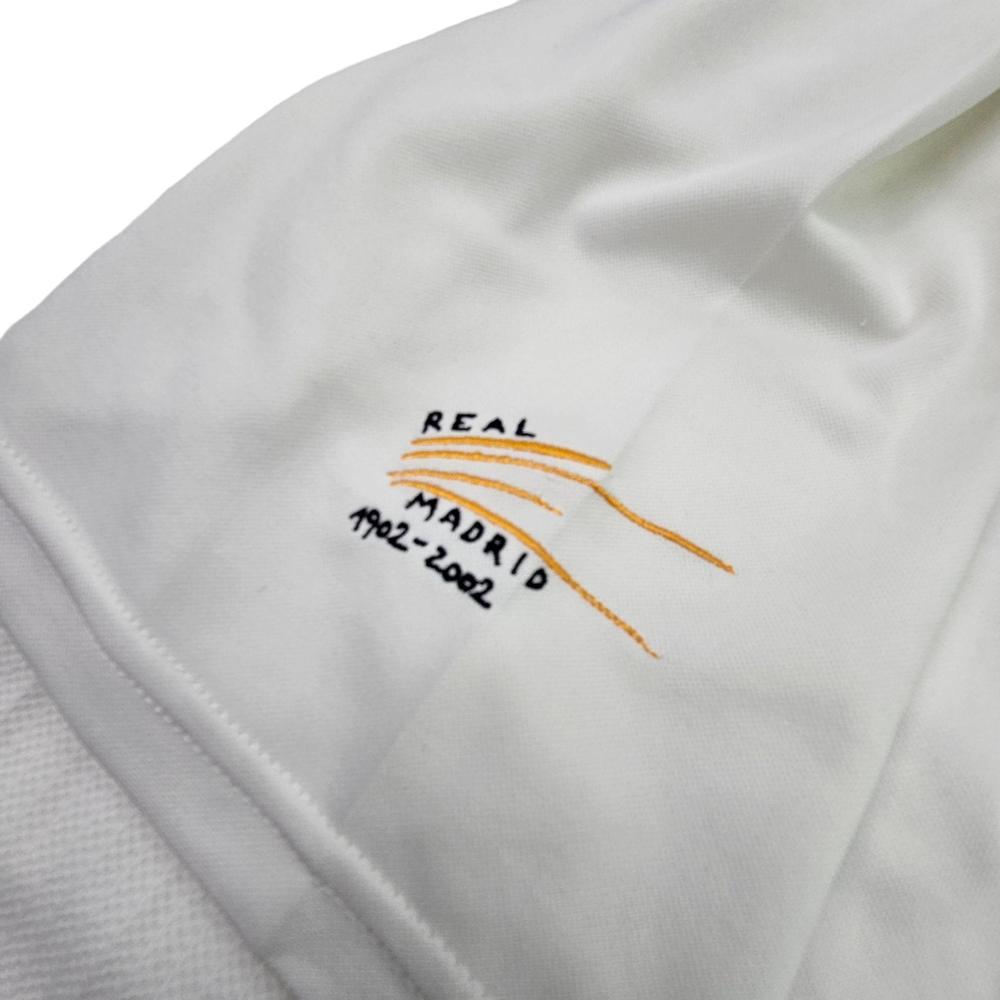 Information:  Official Adidas Real Madrid centenary rare home football shirt from 2002/03 season, as worn when Los Blancos won the La Liga title finishing two points clear of runners-up Real Sociedad in boss Vicente del Bosque's last season in charge.  Shirt is Asian market issue with internal wash labels for the region.  A fantastic vintage jersey, ideal for a collection of your own or the perfect gift for any football fan.
