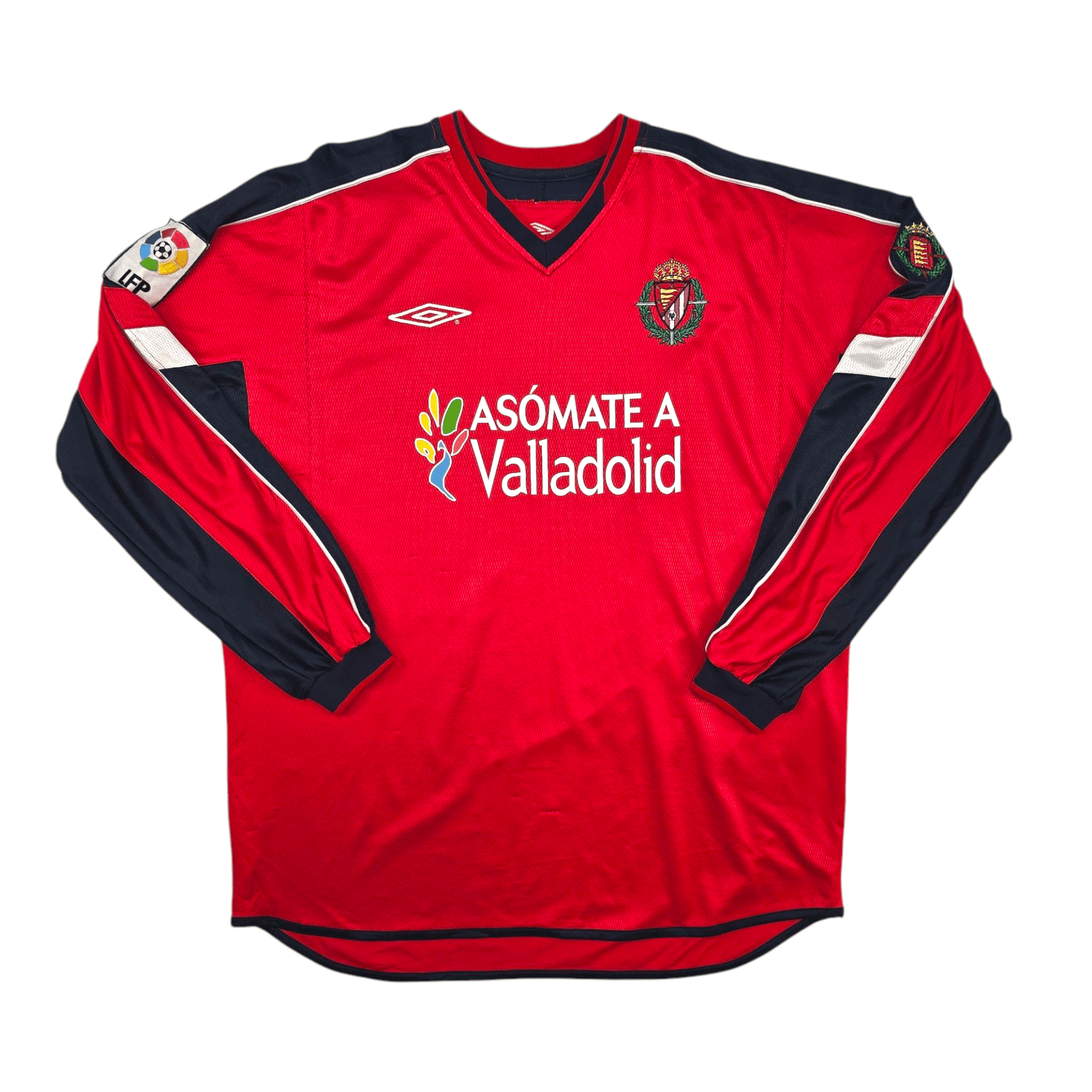 Information: Official Umbro Real Valladolid long sleeve away football shirt from 2003/04, as worn by ‘Pucela’ during a season that saw them relegated from La Liga by just 1 point, finishing 18th behind Racing Santander. A fantastic vintage jersey, ideal for a collection of your own or the perfect gift for any football fan.