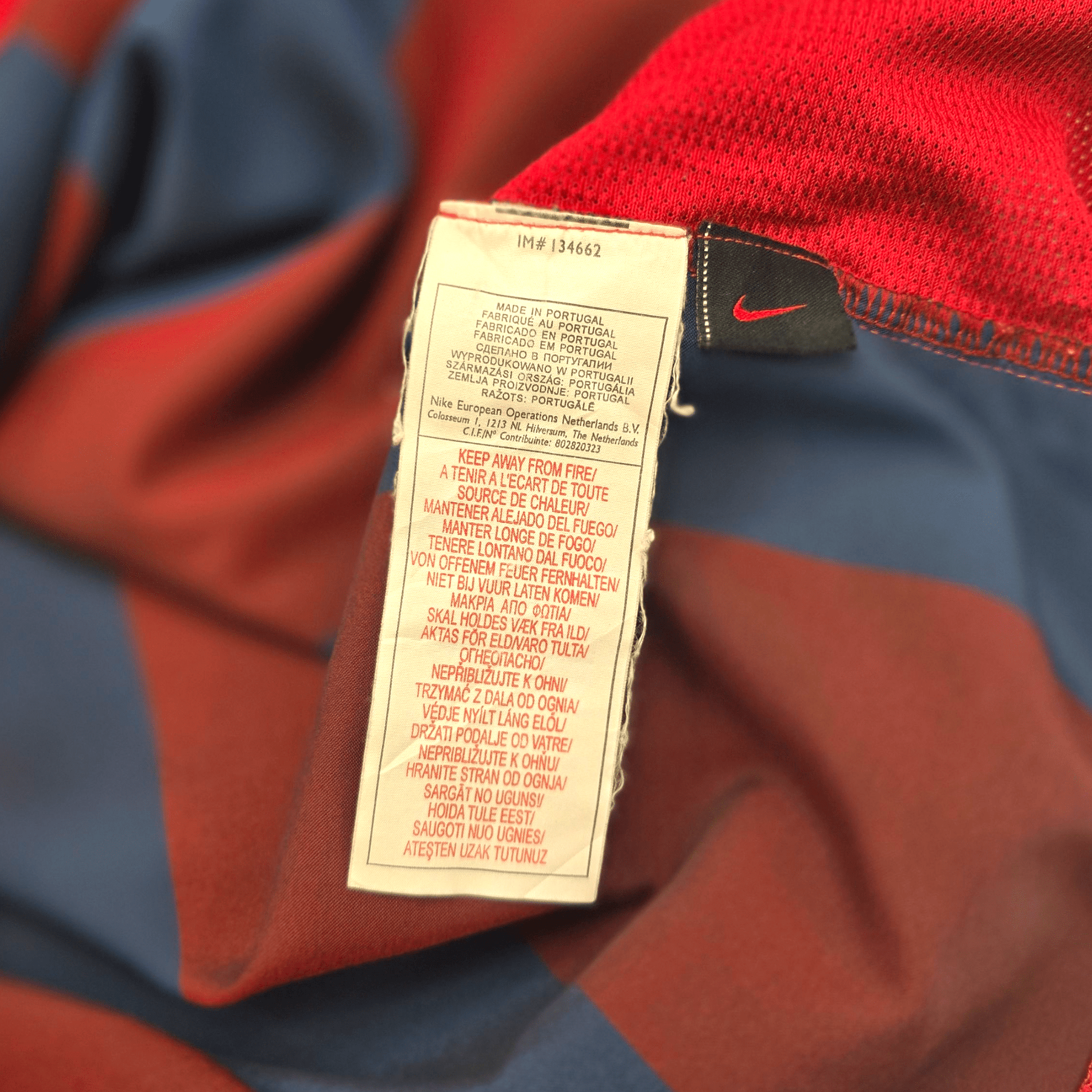 Information: Official Nike Barcelona home football shirt, as worn by 'Barça' during the 2004/05 season, when the side won the La Liga title under Frank Rijkaard. The reverse of the shirt boasts the nameset of club legend, Lionel Messi. A fantastic vintage jersey, ideal for a collection of your own or the perfect gift for any football fan.