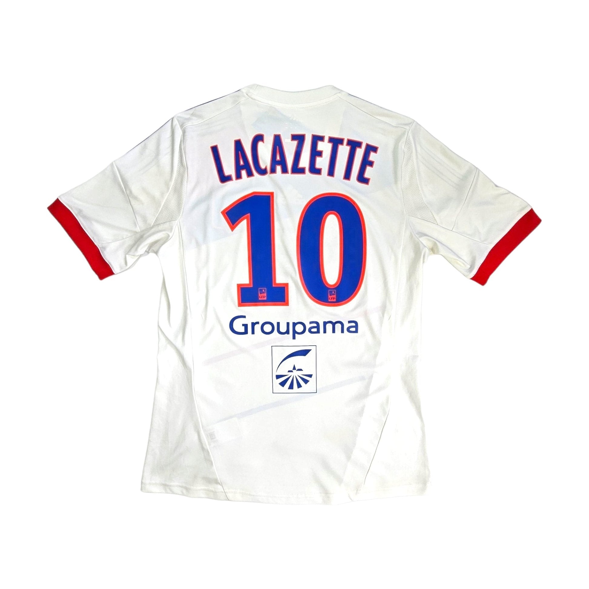 Information:  Official Adidas Olympique Lyonnais Home Football Shirt from the 2012/13 season.  Stylish design, as worn when the club reached finished 3rd in Ligue-1 and reached the Europa League Round of 32 only to be denied by Spurs after a last-minute goal. The shirt boasts the nameset of local boy, Alexandre Lacazette, who still plays for the club today.  The popular French international striker, who also had five productive seasons with Arsenal in the Premier League, has made over 230 appearances for Lyon to date.