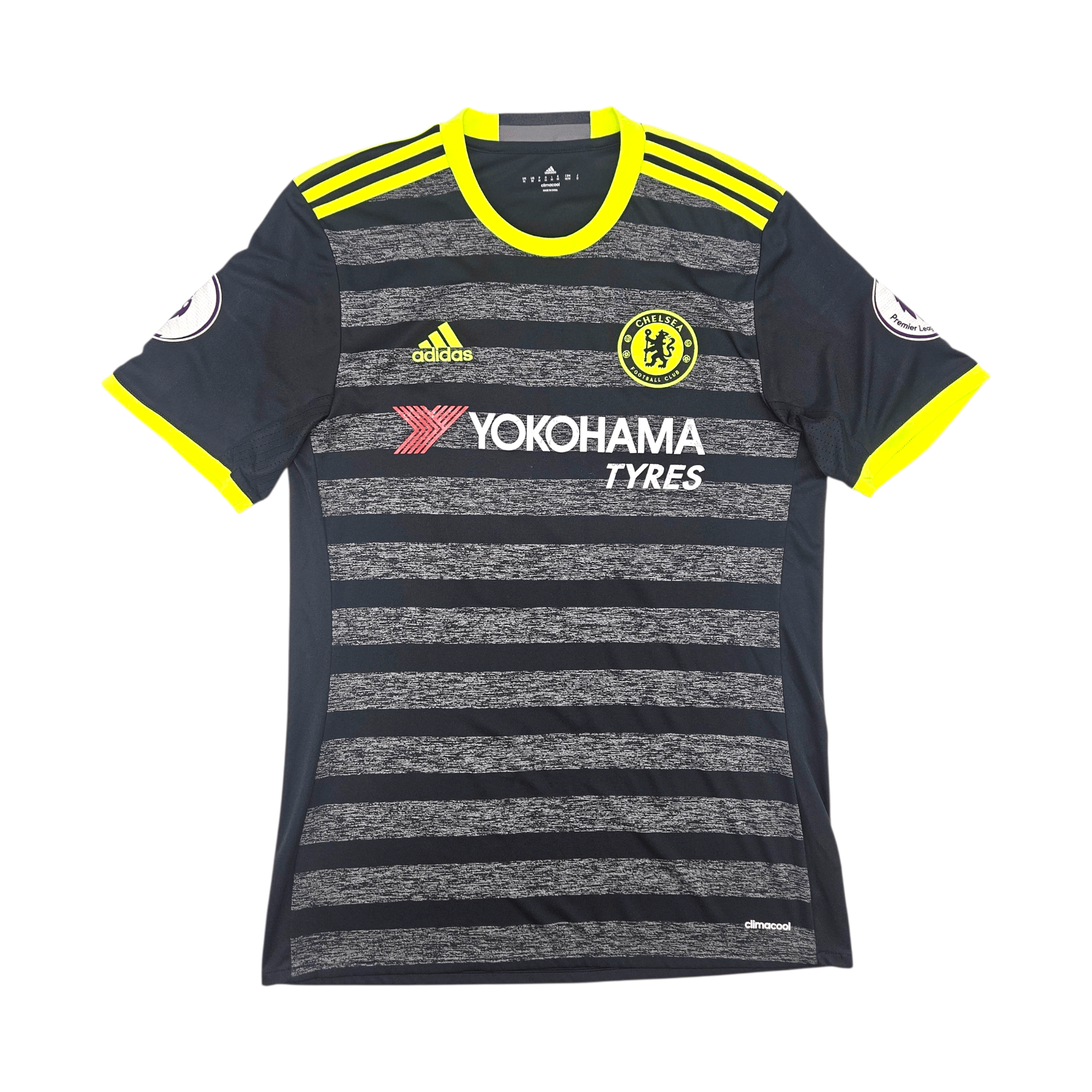 Information: Official Adidas Chelsea away football shirt, as worn by 'The Blues' during the 2016/17 season, when they lifted the Premier League title under Antonio Conte. The reverse of the shirt boasts the nameset of club legend, Diego Costa. A fantastic vintage jersey, ideal for a collection of your own or the perfect gift for any football fan.