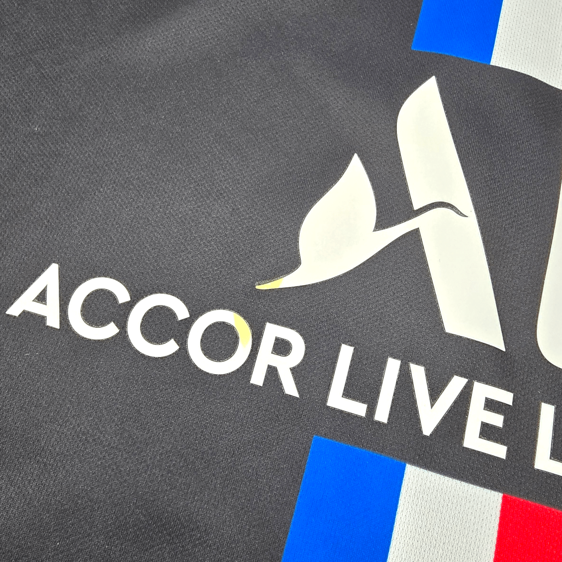 Information: Official Nike Paris Saint-Germain fourth football shirt, as worn by 'Les Parisiens' during the 2019/20 season, when the side dominated domestically by winning the Ligue 1 title, Coupe de France, and Coupe de la Ligue, and reached their first-ever Champions League Final. The reverse of the shirt boasts the nameset of club legend, Kylian Mbappé. A fantastic jersey, ideal for a collection of your own or the perfect gift for any football fan.