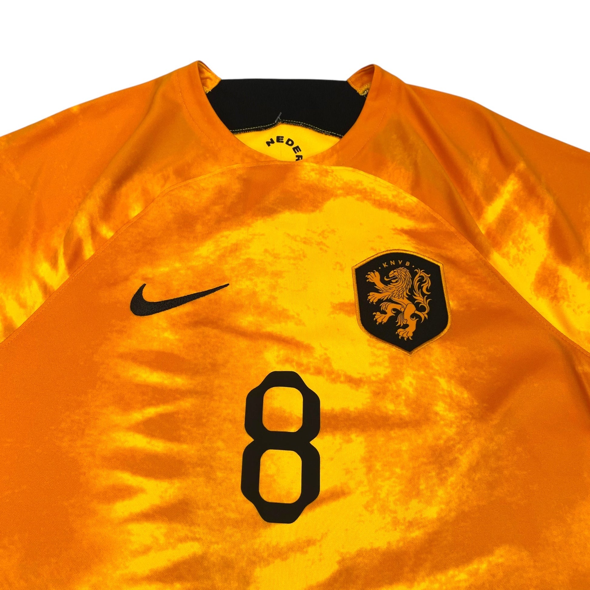 Information: Official Nike Holland Home football shirt, as worn by ‘Oranje’ during the 2022/23 season. The reverse of the shirt boasts the nameset of legend, Cody Gakpo. A fantastic jersey, ideal for a collection of your own or the perfect gift for any football fan.
