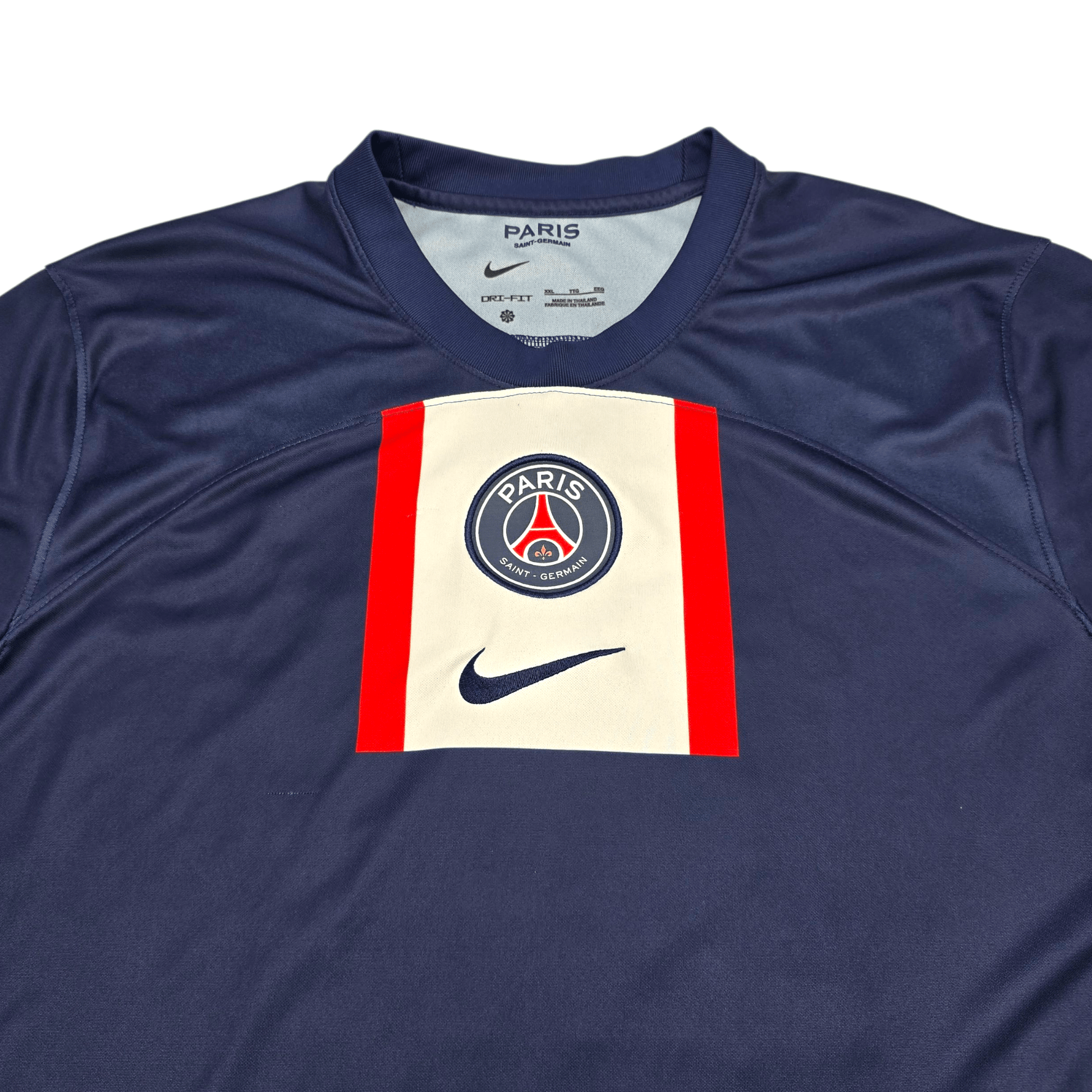 Information: Official Nike Paris Saint-Germain home football shirt, as worn by 'Les Parisiens' during the 2022/23 season. The reverse of the shirt boasts the nameset of club legend, Lionel Messi. A fantastic jersey, ideal for a collection of your own or the perfect gift for any football fan.