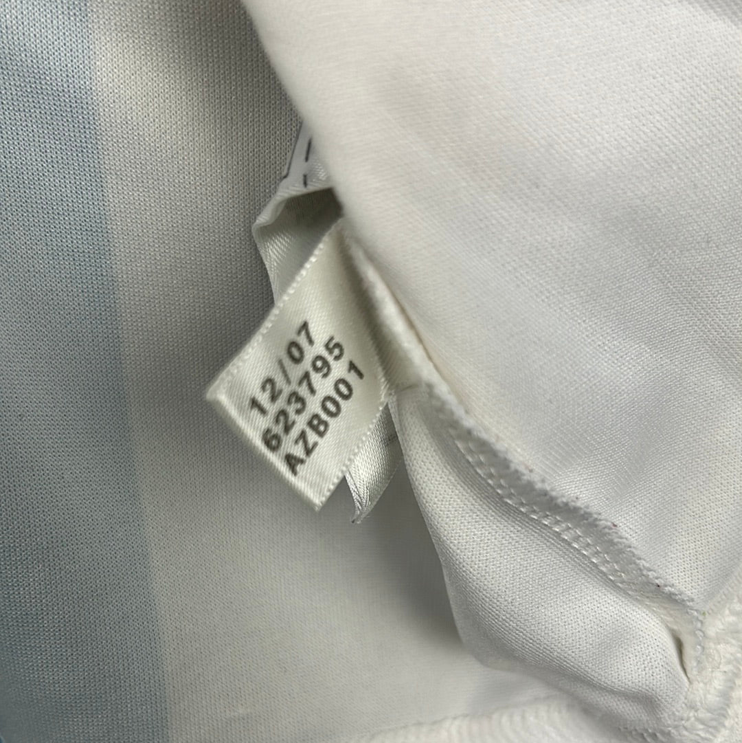 Shirt info: The Argentina 2008-2009 home shirt worn. This is the Adidas 'climalite' version. The shirt features the sky blue and white vertical stripes, with an embroidered Argentina 2-star badge and Adidas logo.