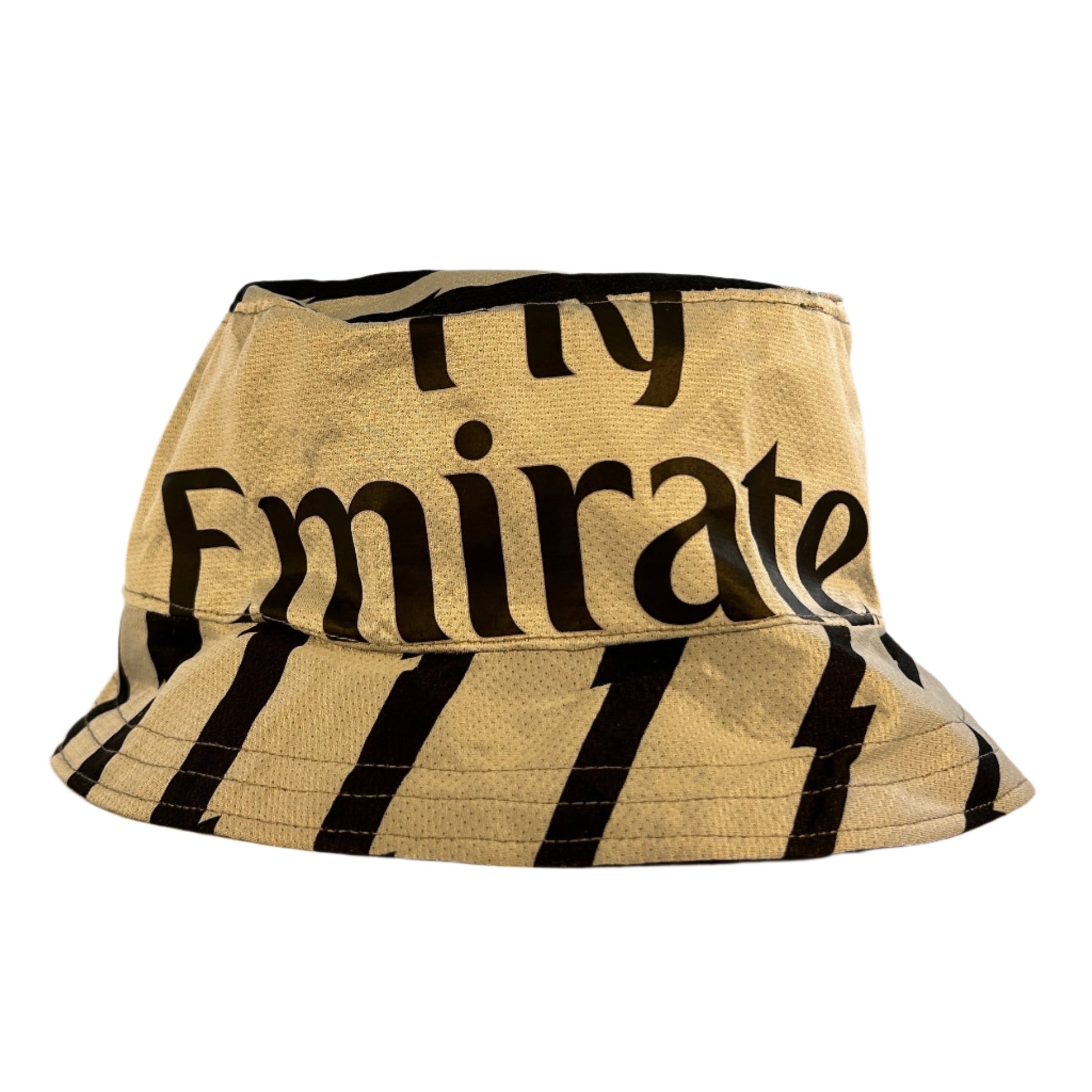 Bucket Hat Info: An Arsenal 2010/2011 goalkeeper shirt upcycled by the team into a unique bucket hat. The hat has the Fly Emirates sponsor on one side. On the other side is the Arsenal badge and Nike logo. This is a very cool Arsenal FC bucket hat.