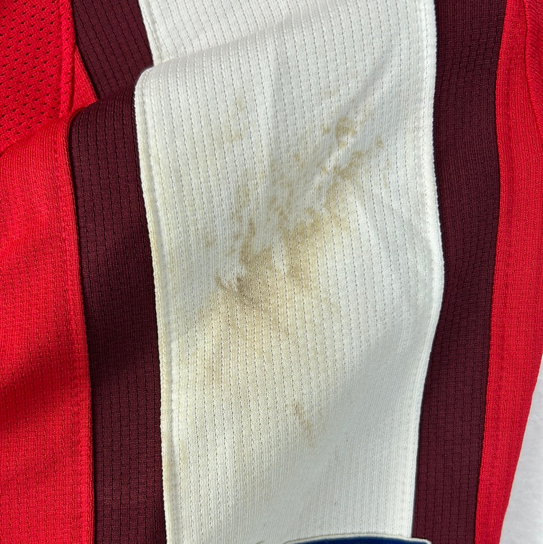 Condition Details: The shirt is in unwashed match worn condition. There is a dirt mark on the sleeve that can be matched to the game. The shirt absolutely stinks of sweat.