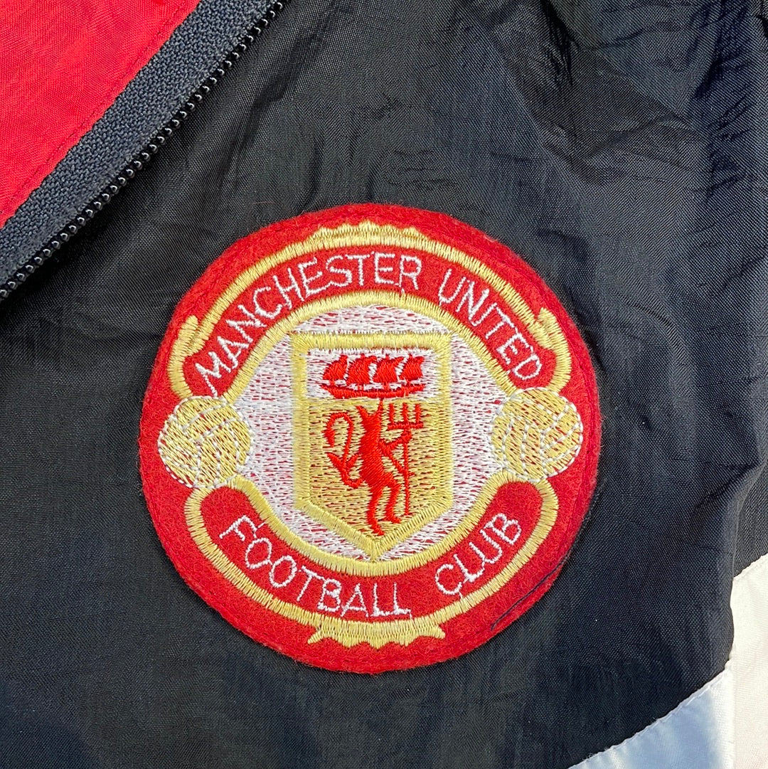 Info: A shell-type jacket that is similar to a 1990s windbreaker jacket. Has the MUFC football style logo on the sleeve that is common on United clothing before they were made with the shirt brands.