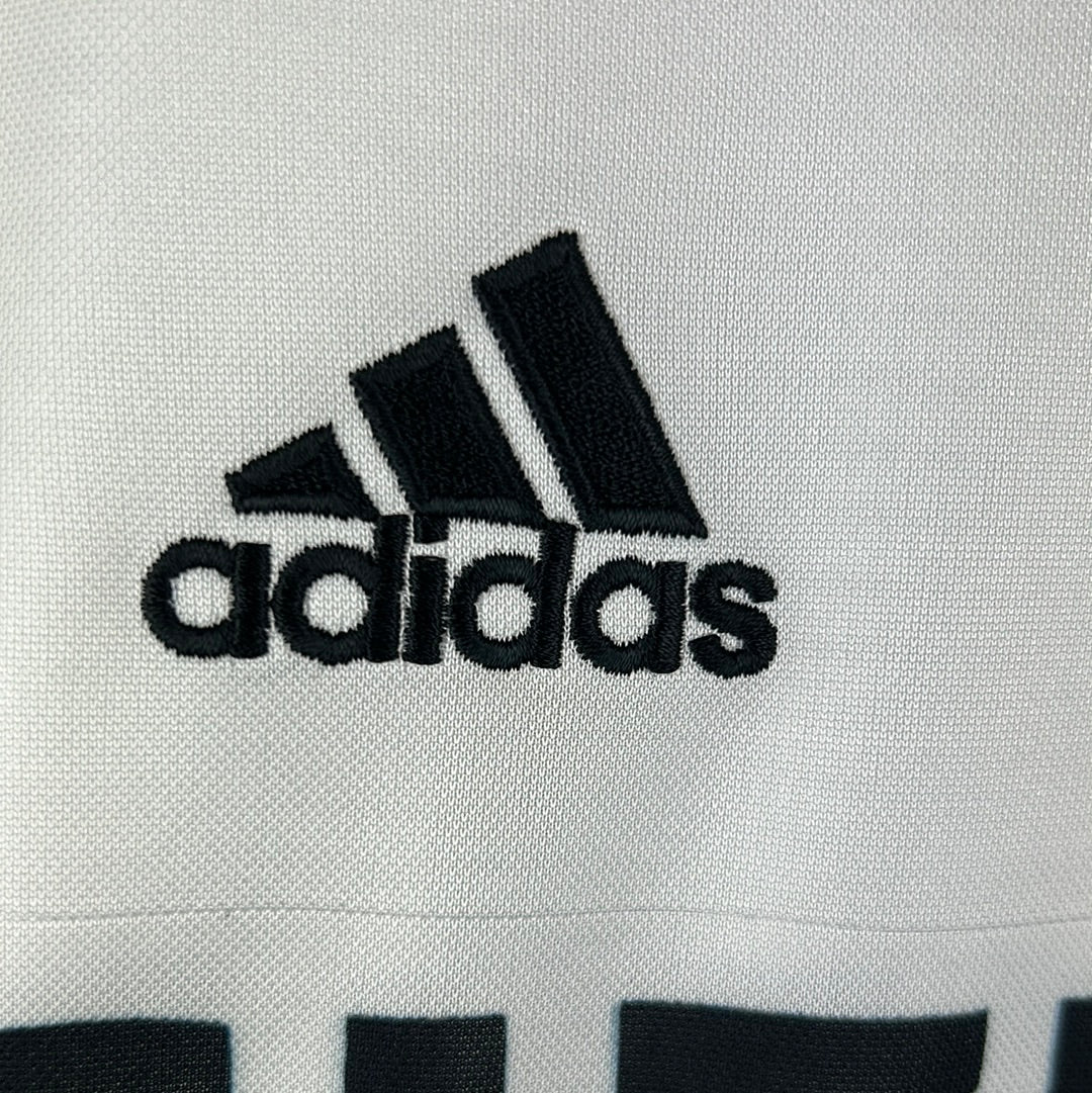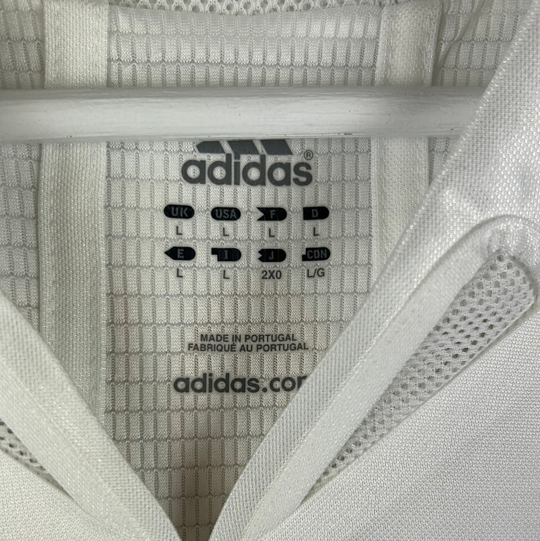 Player Issue Details: Original formation Adidas shirt, correct badges and prints. The shirt has an embroidered Real Madrid badge, embroidered Adidas logo and printed 3 stripes on the sleeves. It has a La Liga patch on one sleeve.