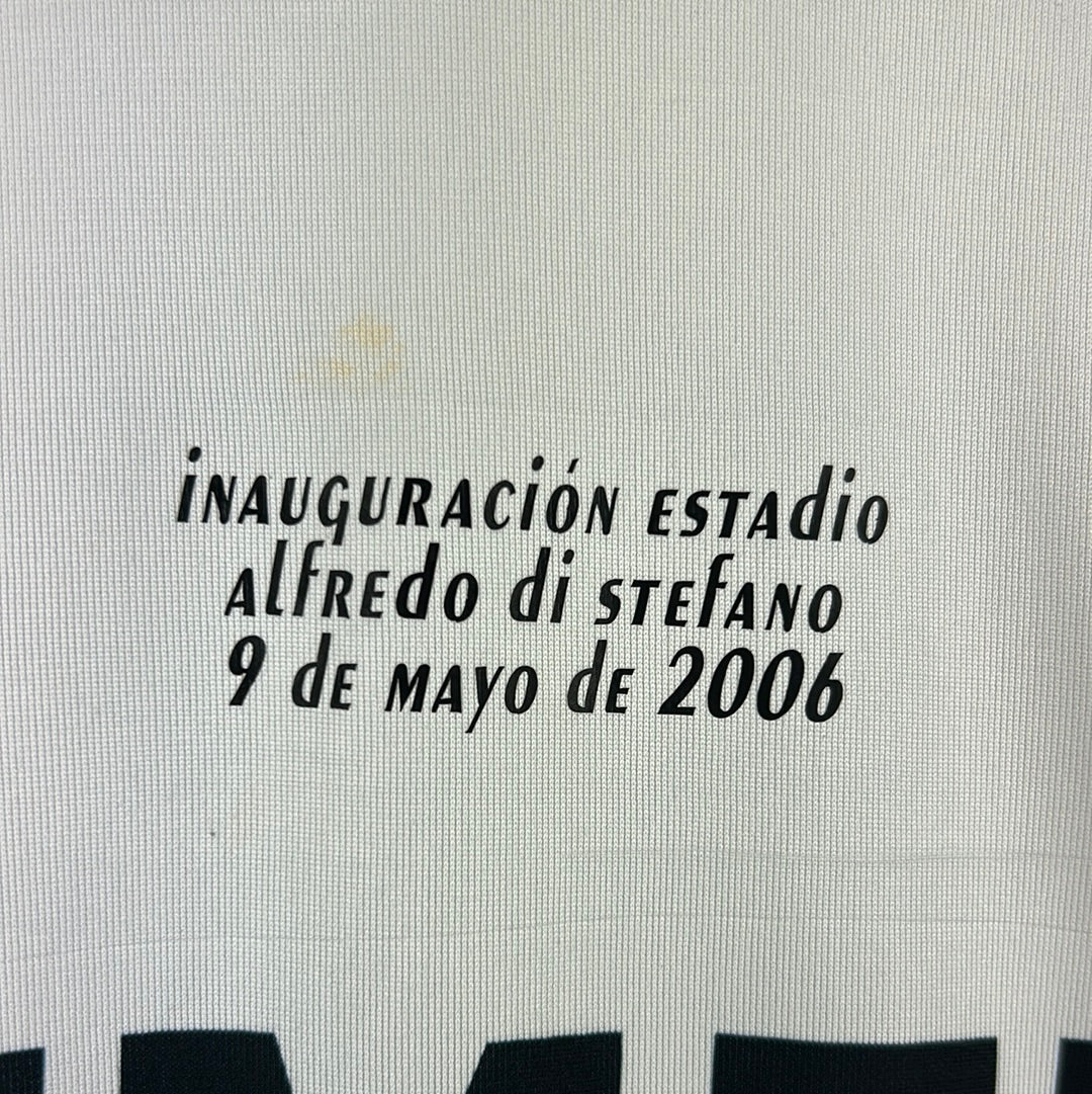 Player Issue Details: Original formation Adidas shirt, correct badges and prints. The shirt is from the opening of the new stadium and has the front print "inaugracion Estadio Alfredo di Stefano 9 de mayo de 2006". This is correct for the specific match.