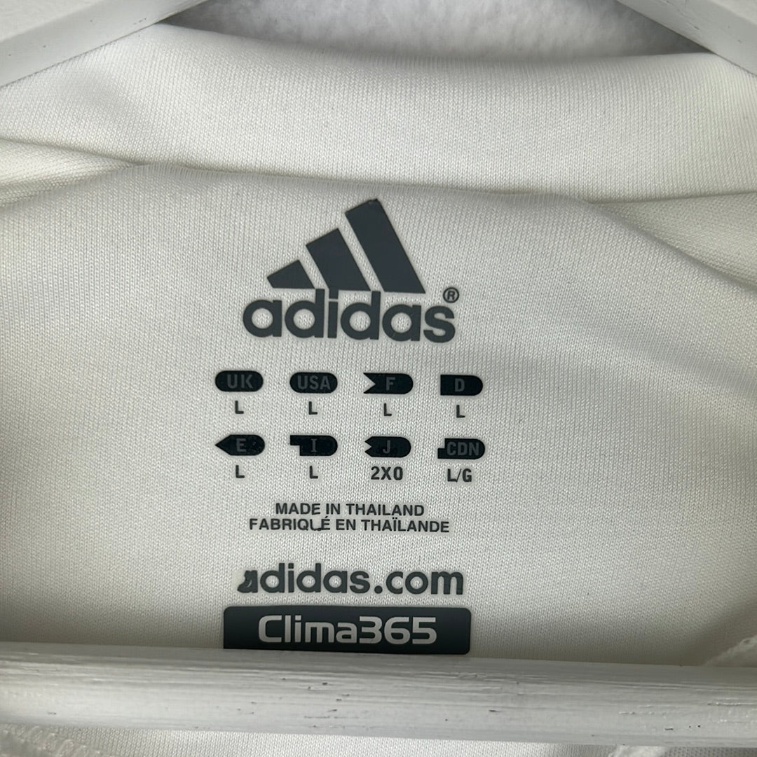 Player Issue Details: Original formation Adidas shirt, correct badges and prints for a La Liga match. The Adidas stripes and logo are printed on - correct for a player issue shirts in this season.