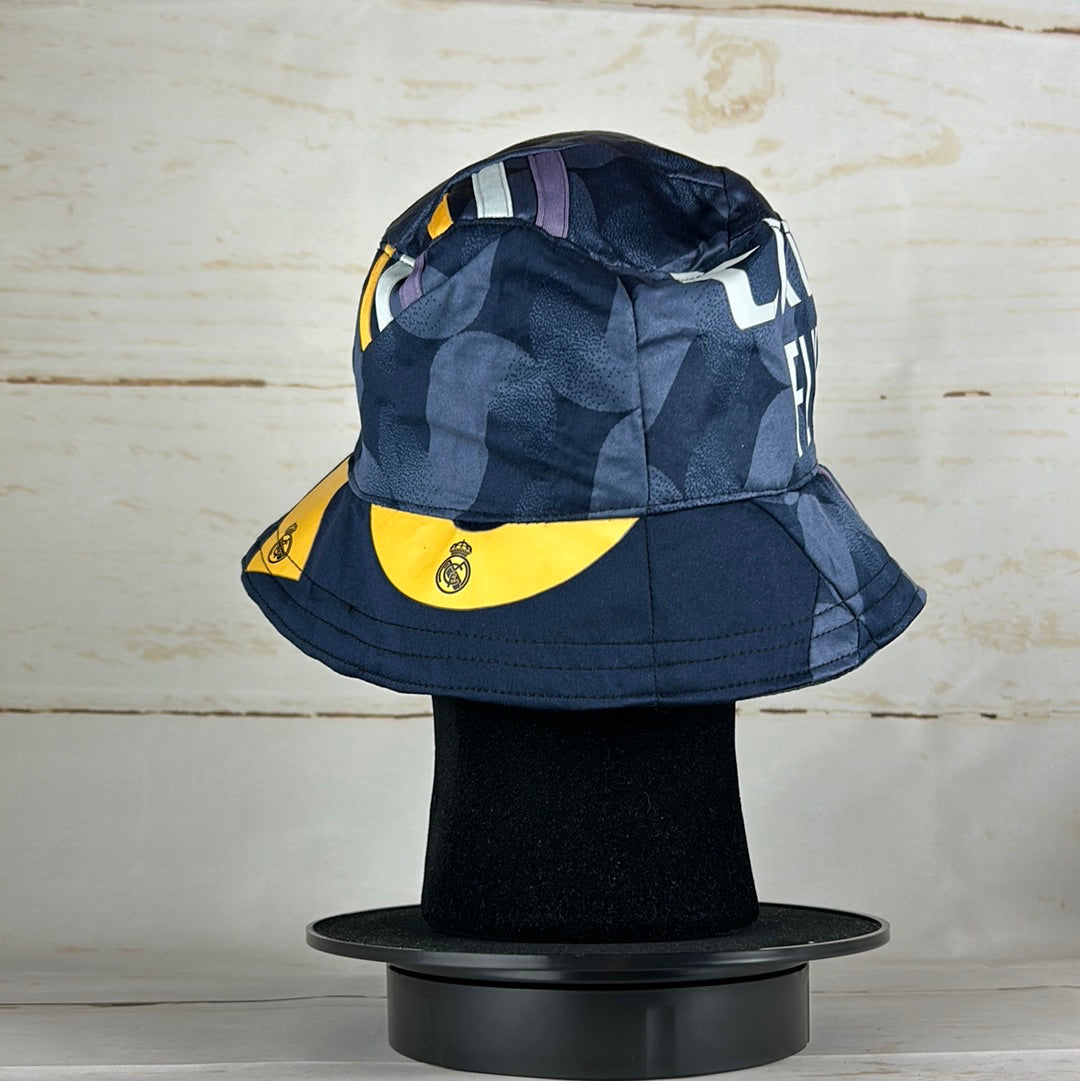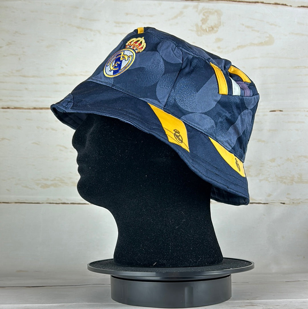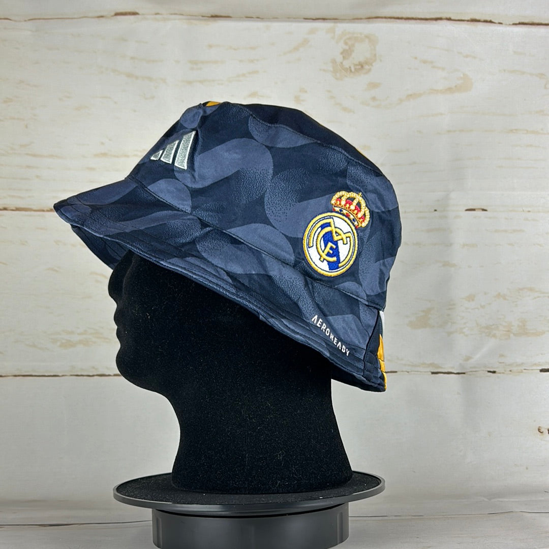 Bucket Hat Info: A custom Real Madrid away shirt bucket hat from the 2022/2023 season. It is a black bucket hat with a shirt pattern, making a great bucket hat. These have the badge and Adidas logo in the design. Select your chosen design from the drop-down menu below.