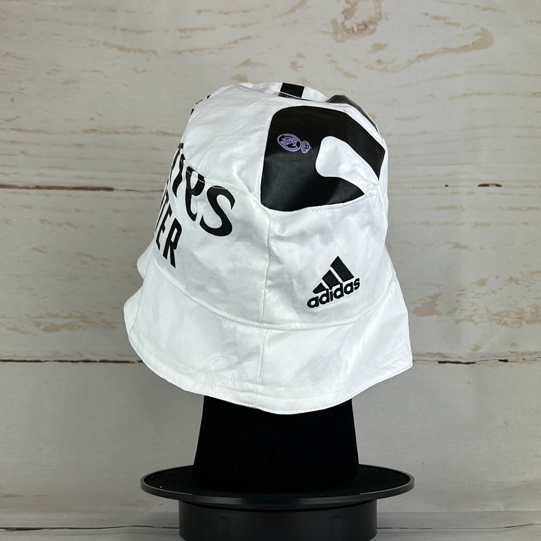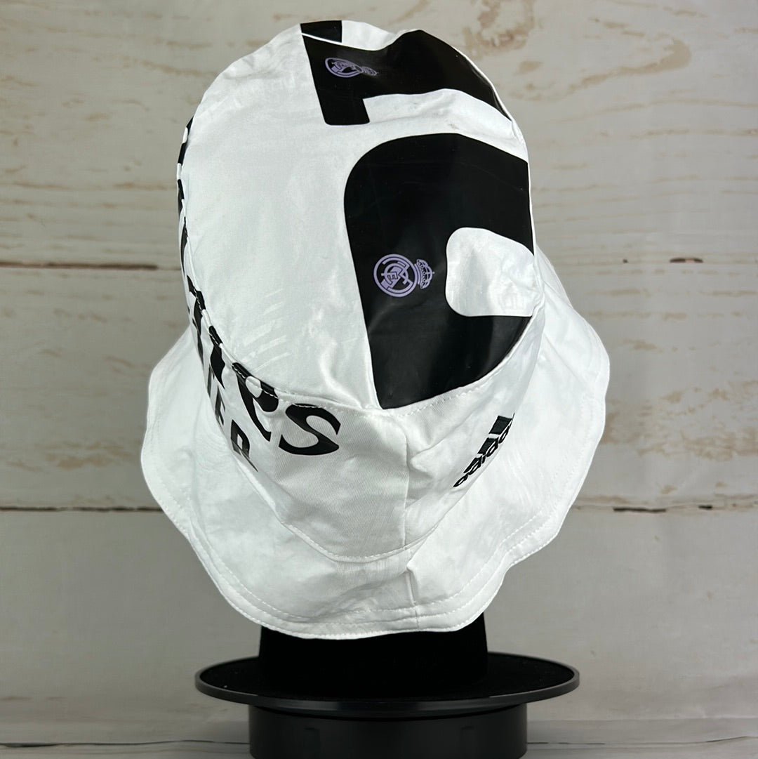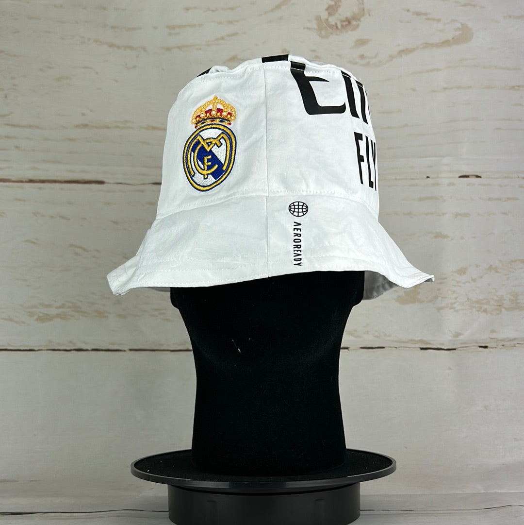 Bucket Hat Info: A custom Real Madrid home shirt bucket hat from the 2022/2023 season. It is the Real Madrid badge, part of the 10 print and the Fly Emirates sponsor print is included in the design.