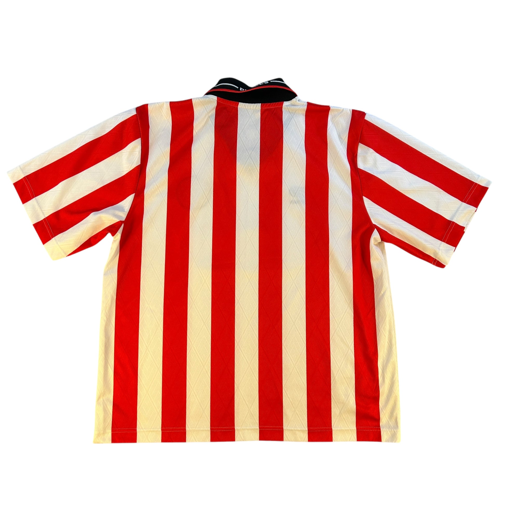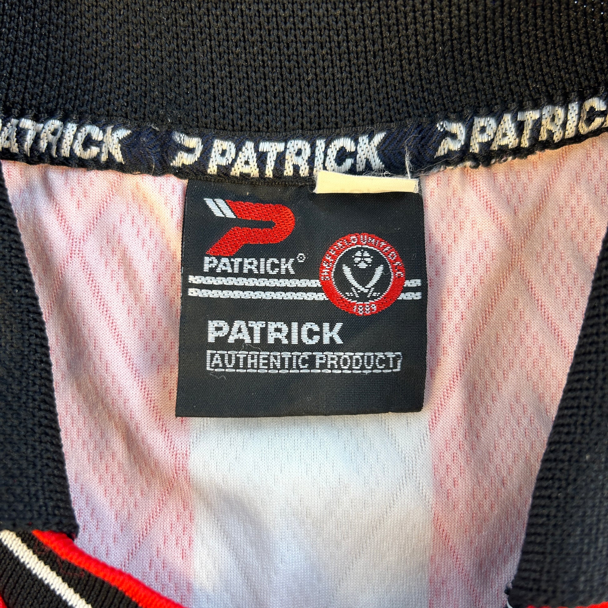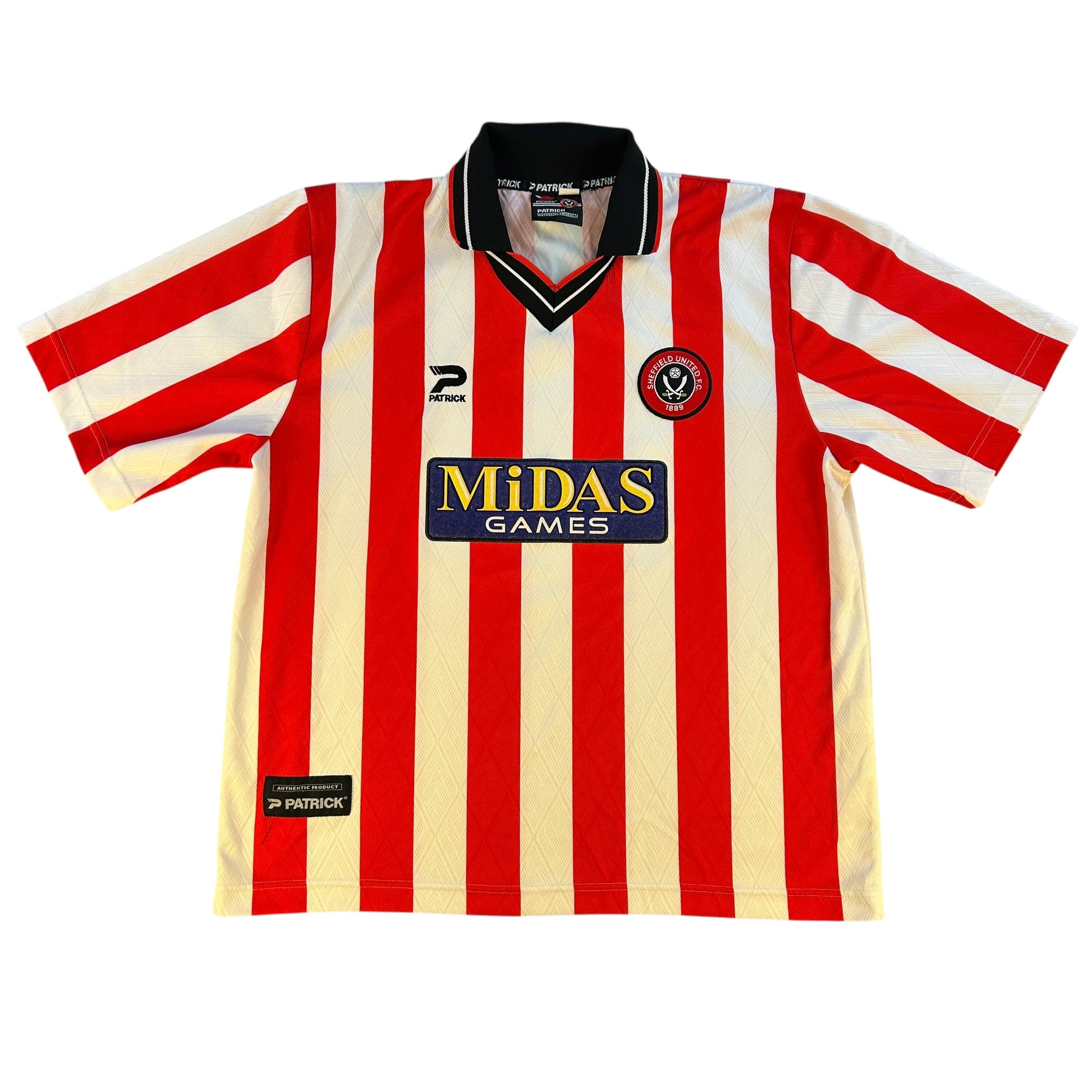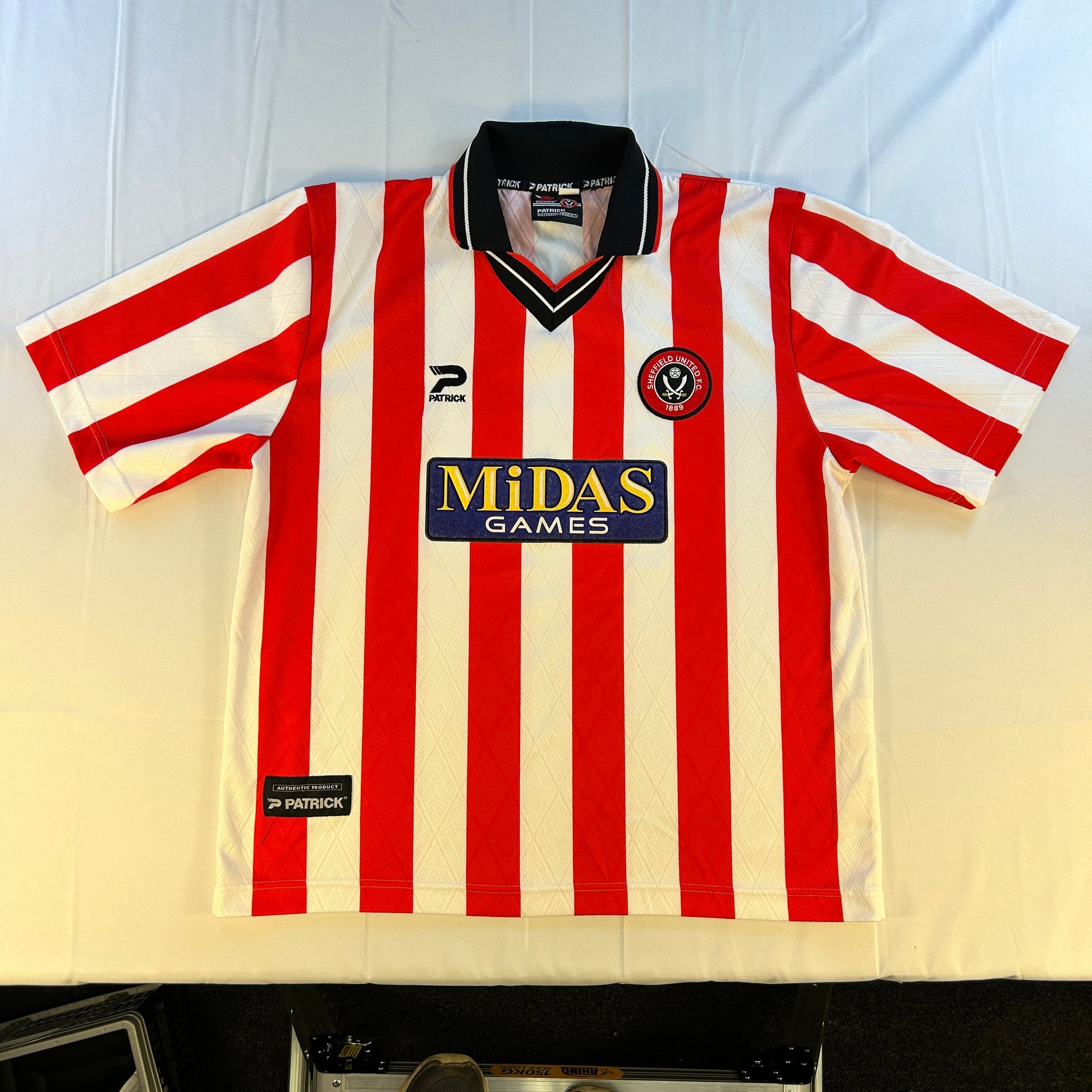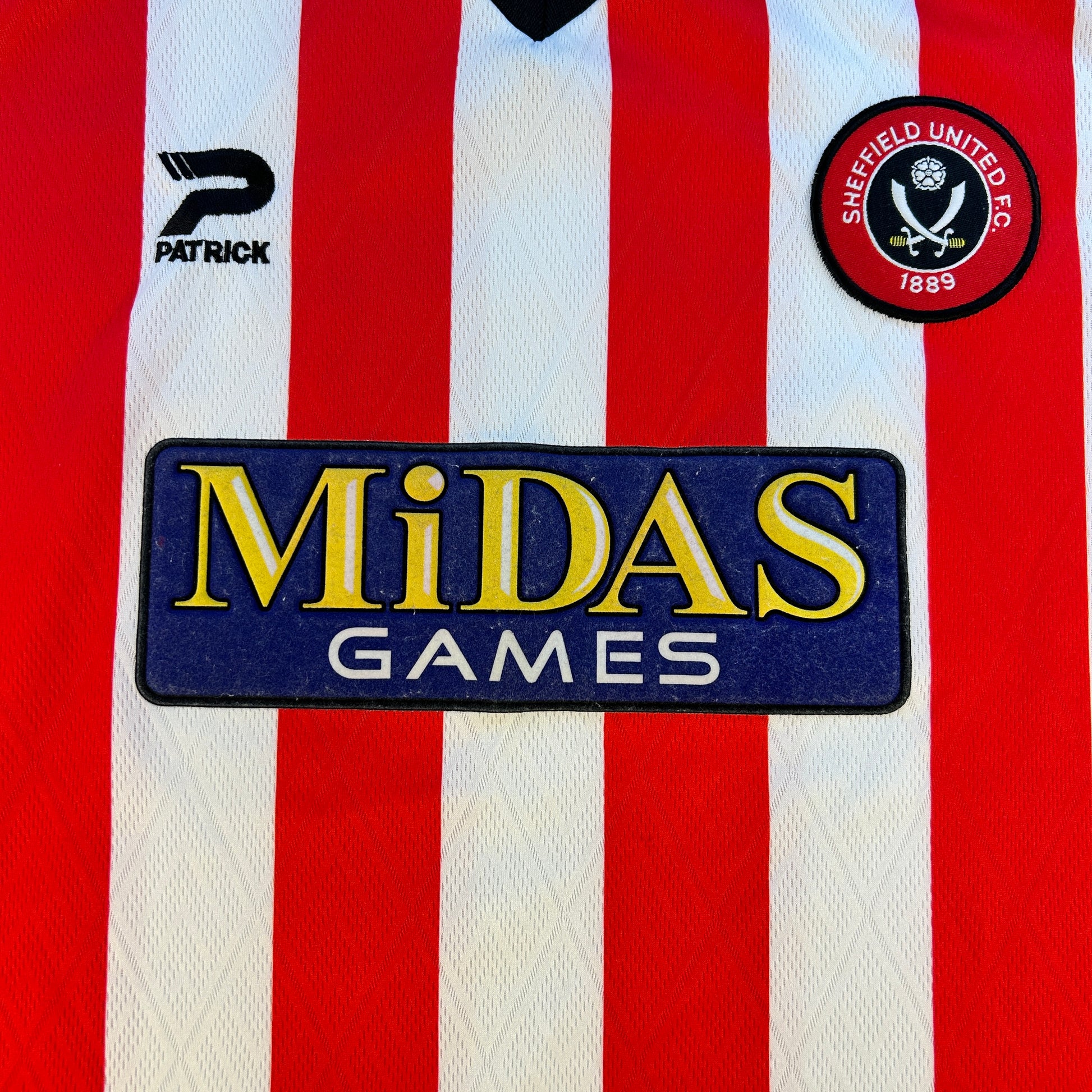 Shirt info: This is the Sheffield United home shirt worn during the 2000/2001 season. A classic look for them with the large Midas Games sponsor and the black collar.