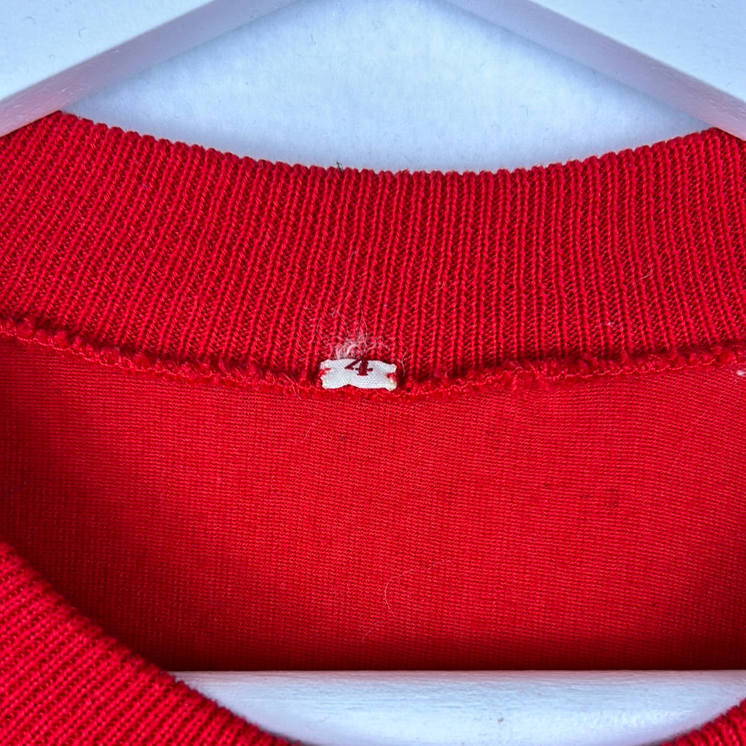 Size: There is no size label, just a "4" sewn into the neck of the shirt.