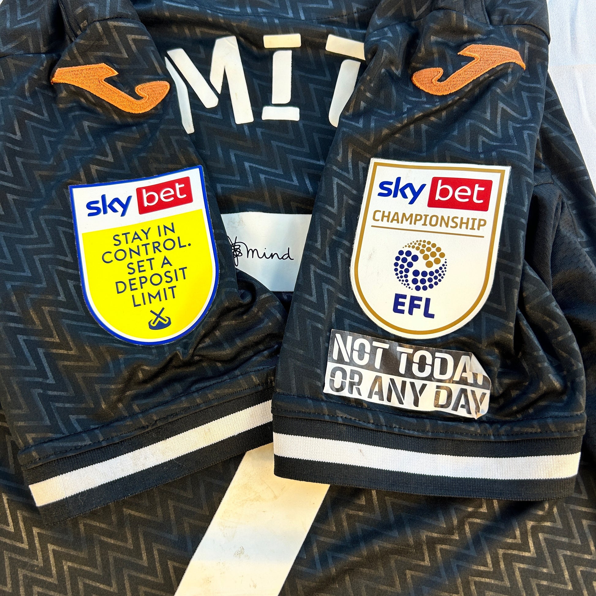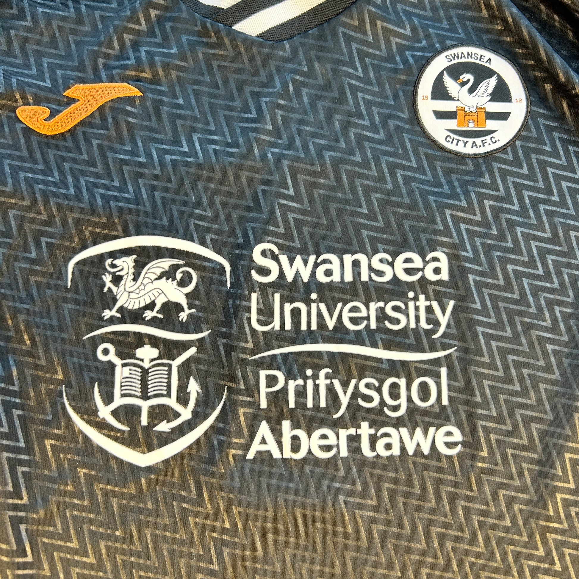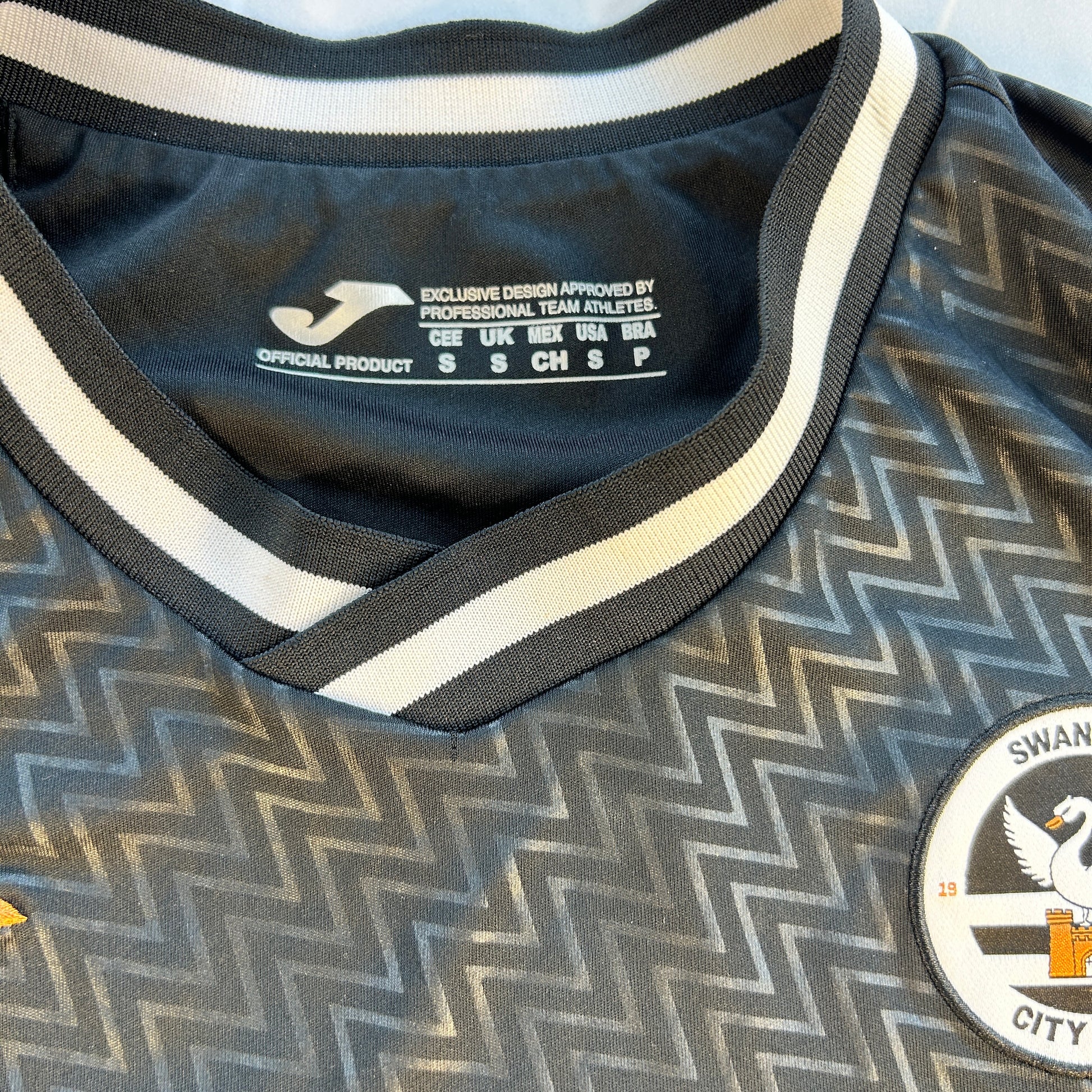 Player Issue Details: This is the original player-issue shirt for Swansea, with the correct size prints and sleeve patches.