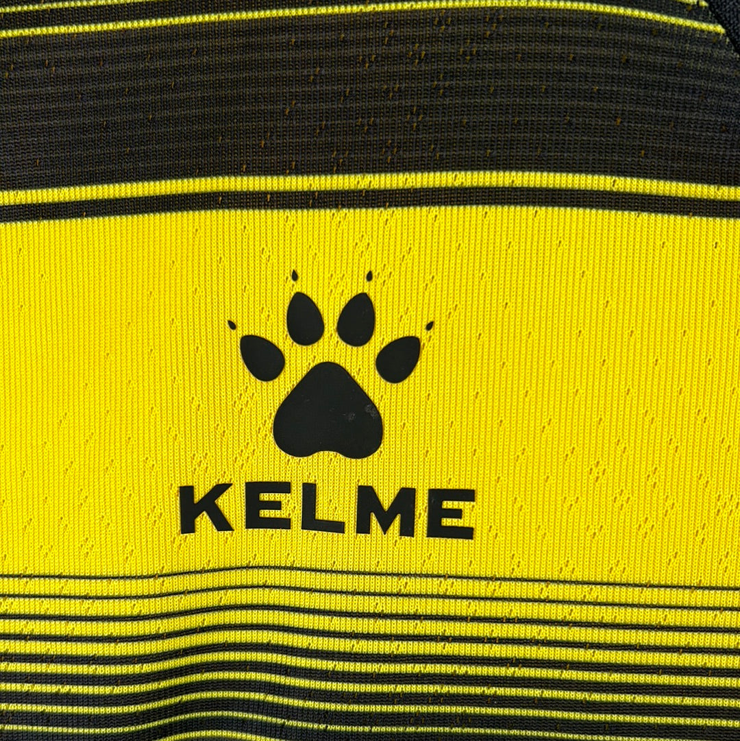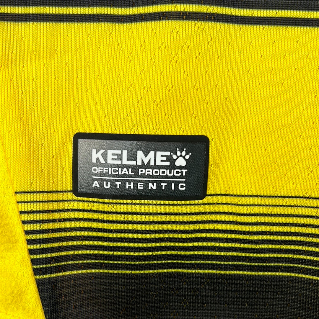 Player Issue Details: The shirt is a player-issue Kelme shirt. This has been worn v Wolves and matches the placement of the Watfrod badge from the game. If you look closely you will see that it isn't straight to the lines on the shirt. The tip of the badge just goes over the first line.