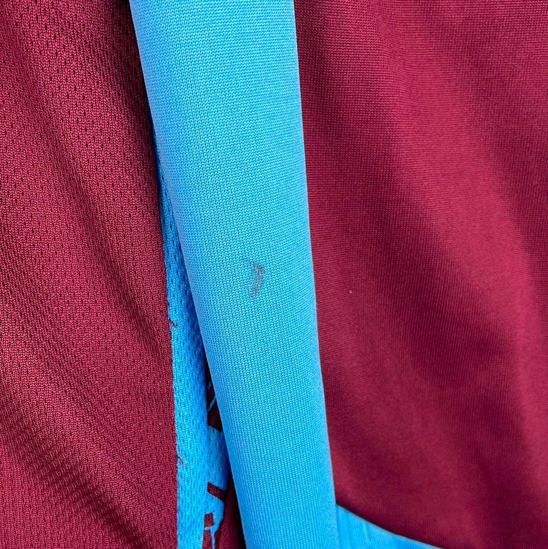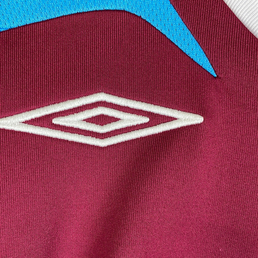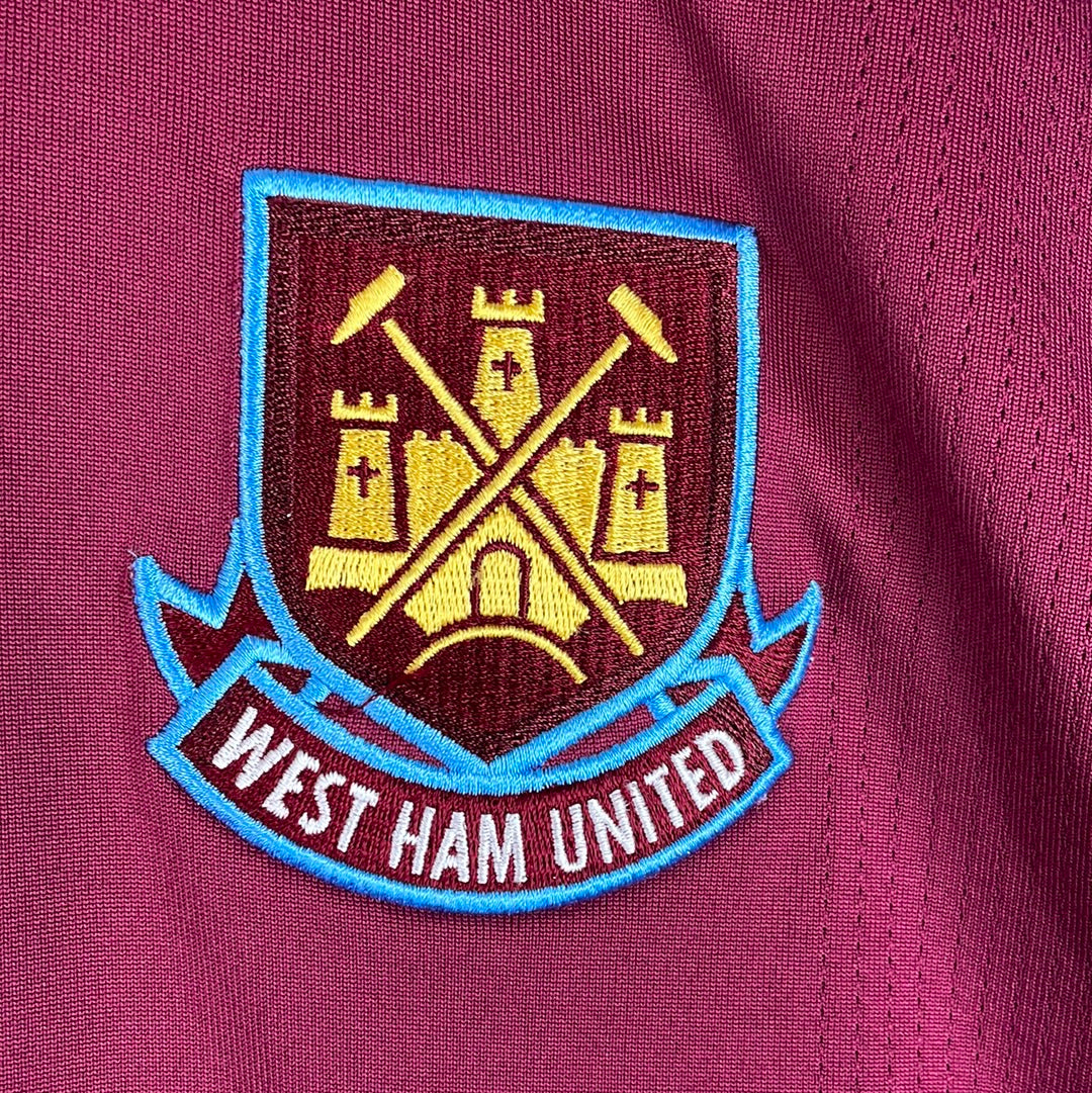 Shirt info: The West Ham home shirt in the 2007/2008 season. The shirt has a hammers design side panel and blue material in the design. This is a long-sleeve version of the shirt.