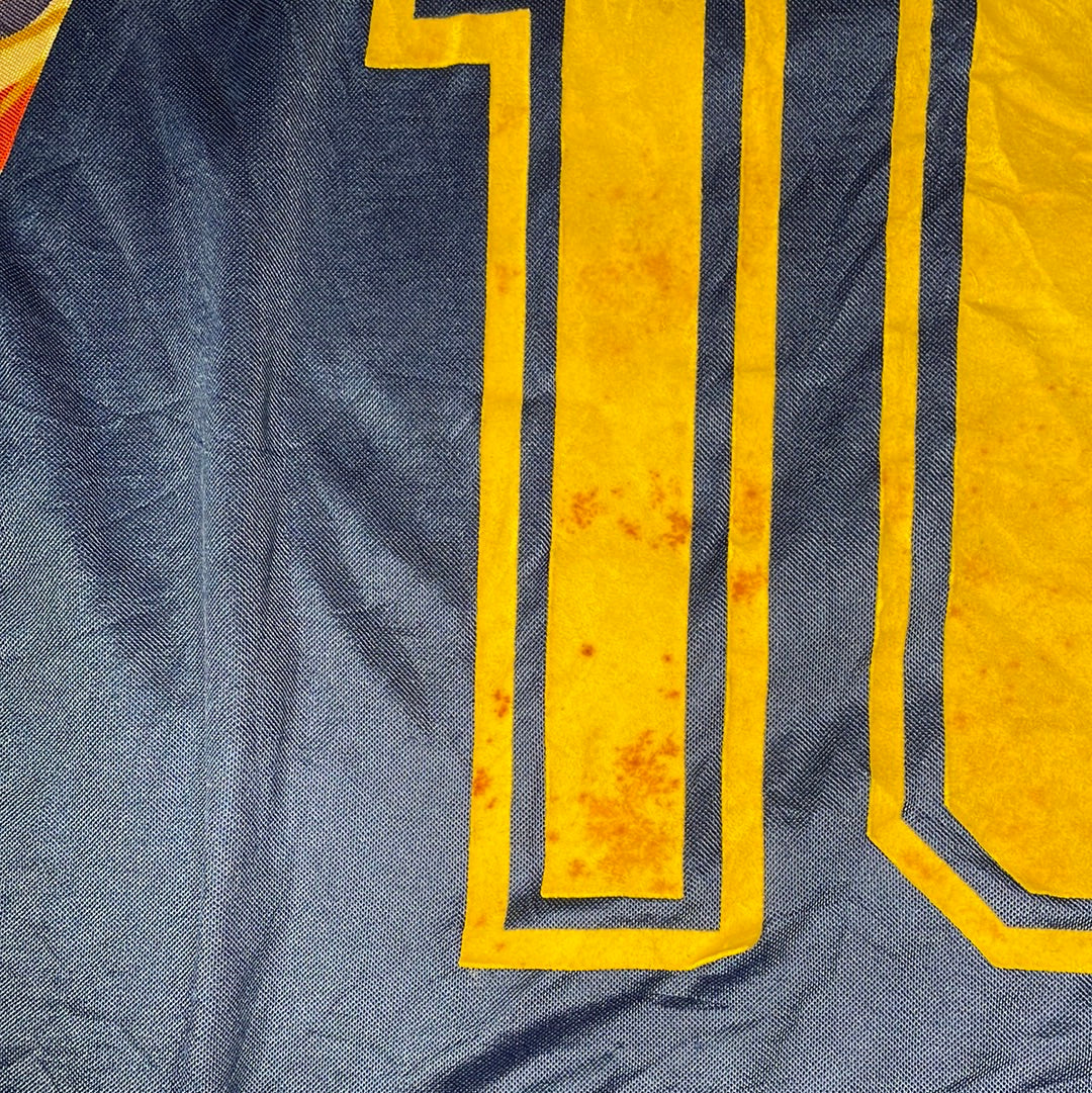 Condition Details: The material is in very good condition with no pulls or holes. The O in YOKOHAMA is lifting. The number  1 of the 10 is lifting slightly and is marked. There are some marks on one shoulder that may wash out.