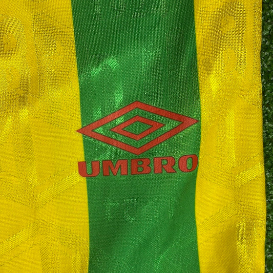 Manchester United 1994/1995 Training Shorts - Large Adult - Green & Gold Vintage