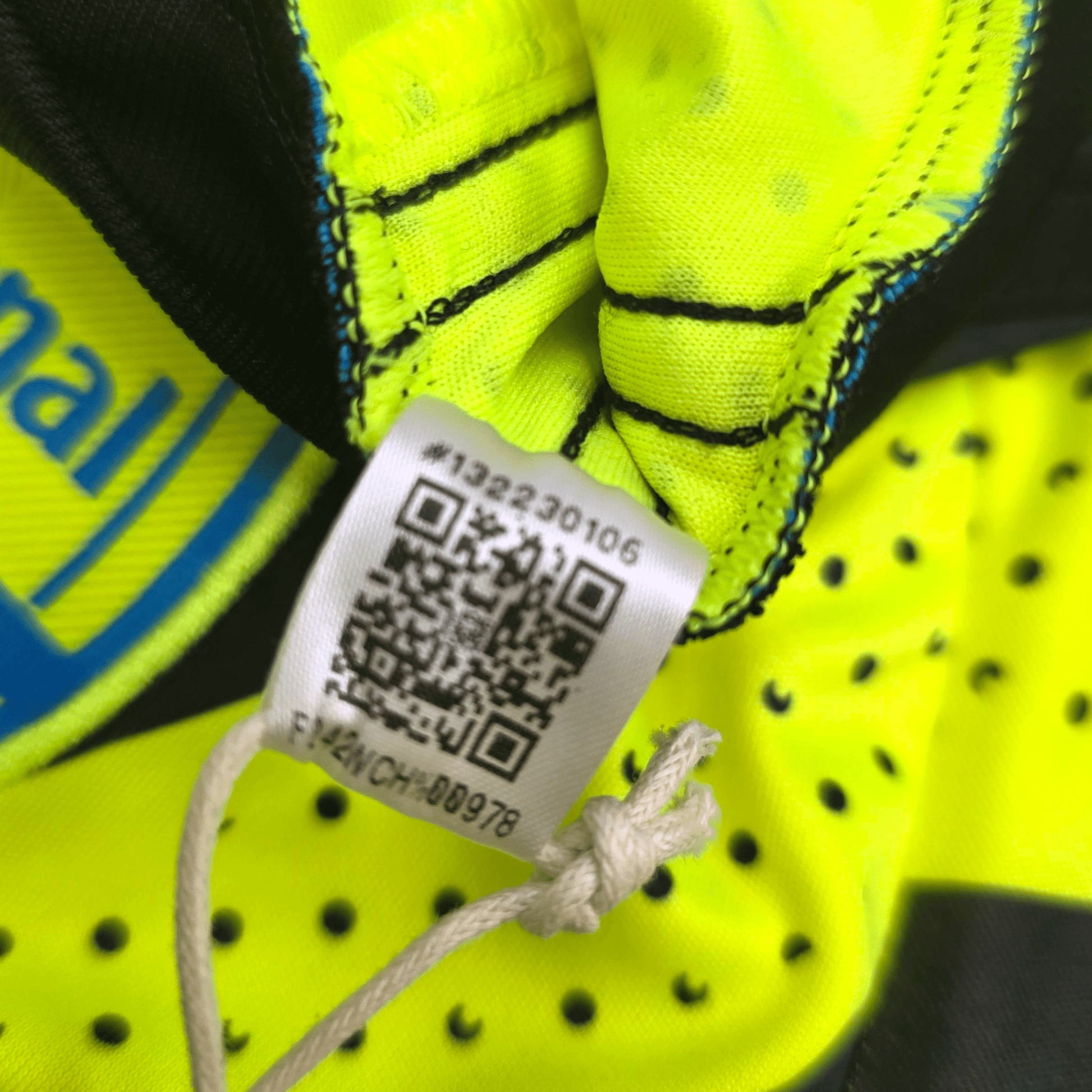 Information: Official Adidas Arsenal away football shirt, as worn by 'The Gunners' during the 2023/24 season. The reverse of the shirt boasts the nameset of club legend, William Saliba. A fantastic jersey, ideal for a collection of your own or the perfect gift for any football fan.